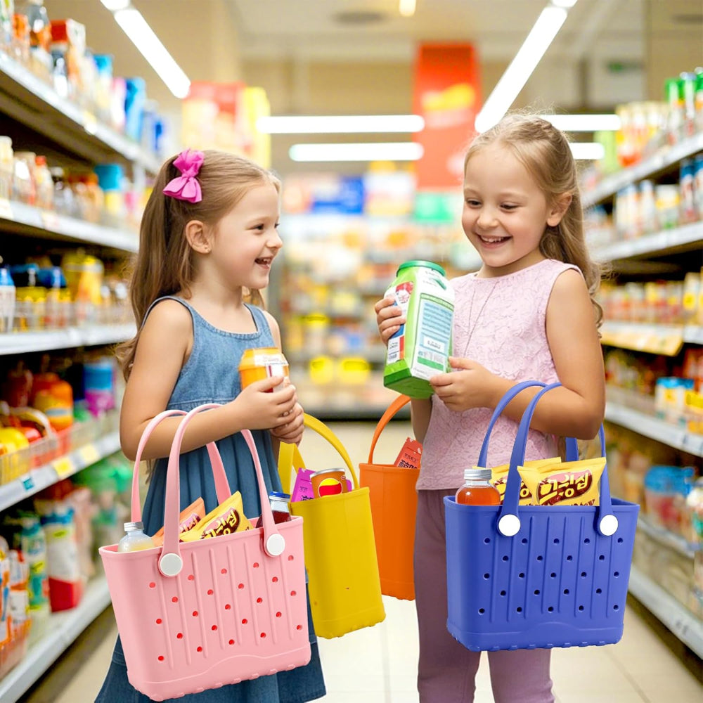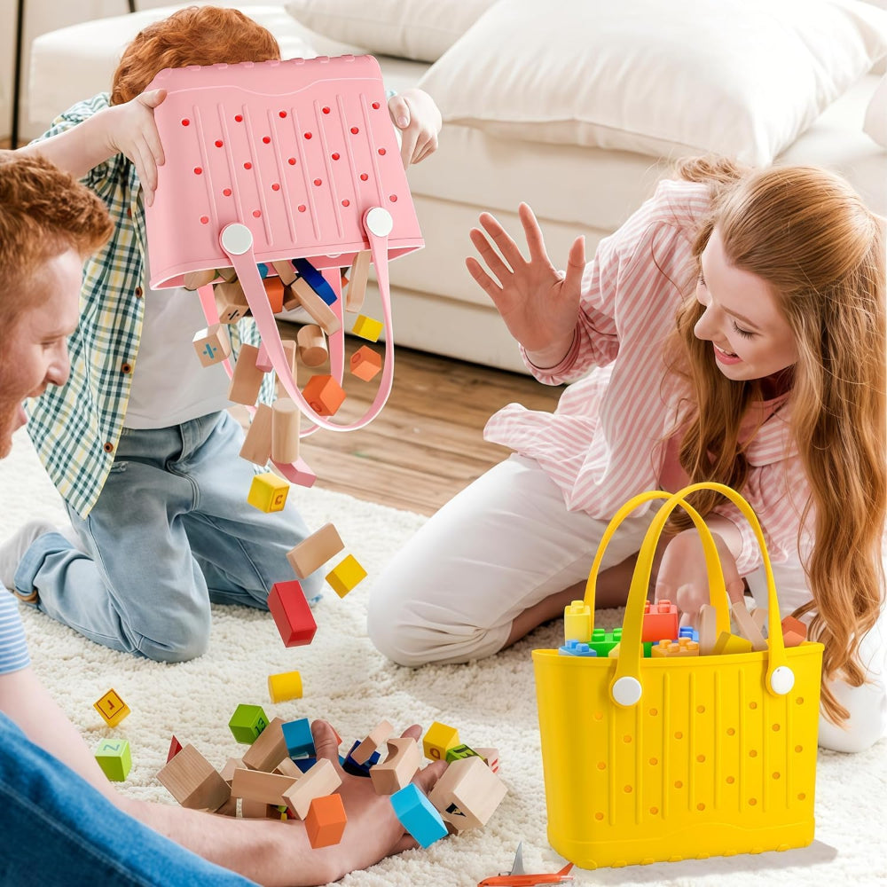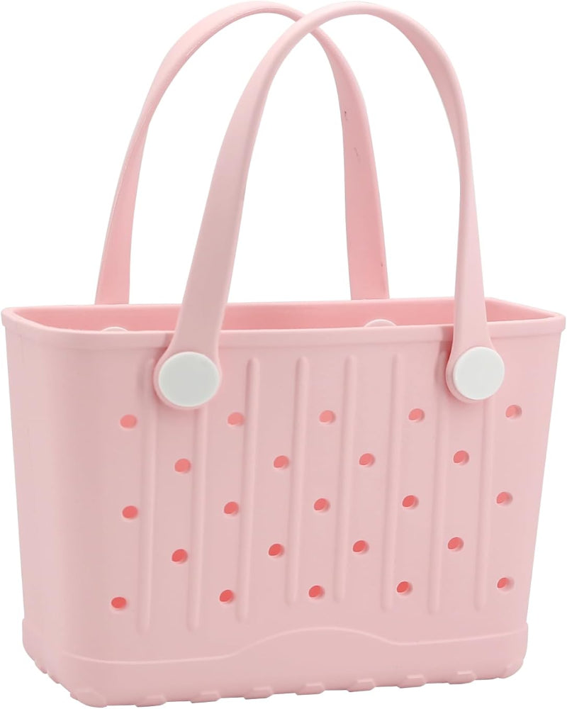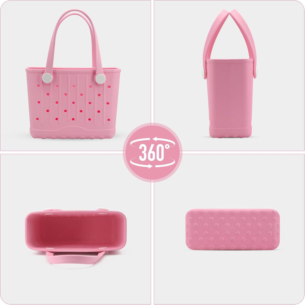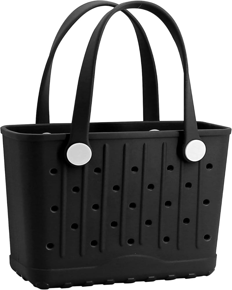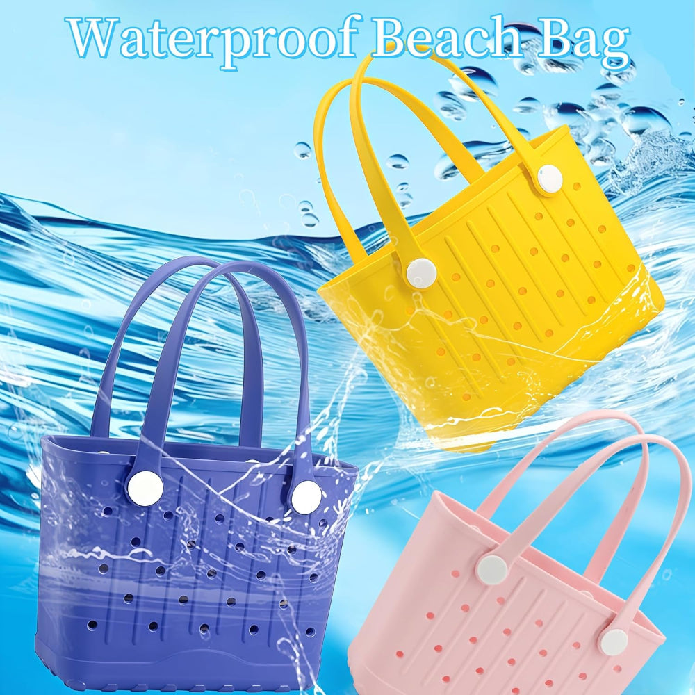 Rubber Tote Bag – Waterproof Beach Handbag- Carry your essentials in style with this versatile Small Rubber Tote Bag, crafted from high-quality EVA material for a lightweight yet durable design. Measuring 28x21x11cm (11x8.26x4.33in), it features a large, easy-access opening and a non-slip patterned bottom to keep your bag upright at all times. Waterproof and washable, this beach tote resists water and sand, making cleanup effortless after a day at the beach. The breathable perforated design helps air out damp items, keeping your belongings fresh, while the flexible handles and soft shoulder strap ensure comfortable portability. Perfect for travel, beach trips, or daily use, this multifunctional tote can also be personalized with accessories for a fun, unique look. Durable, practical, and stylish, it’s the ultimate companion for any outing.