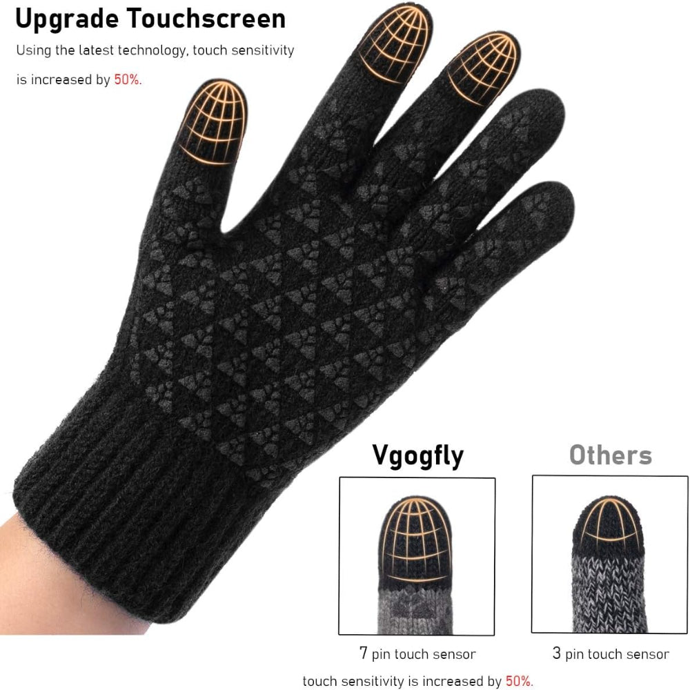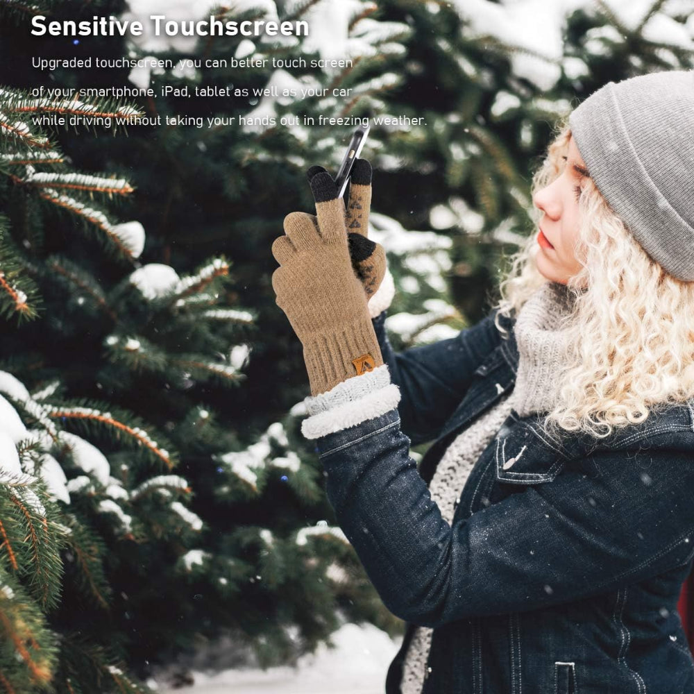 Touchscreen Friendly, Winter Knit Gloves, Anti-Slip Fleece Lined for Men and Women
