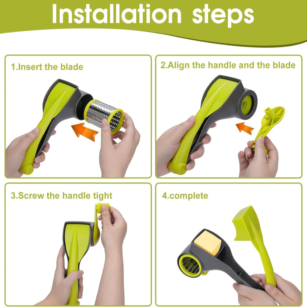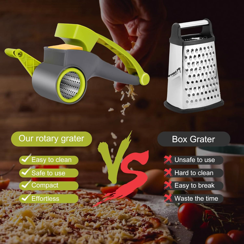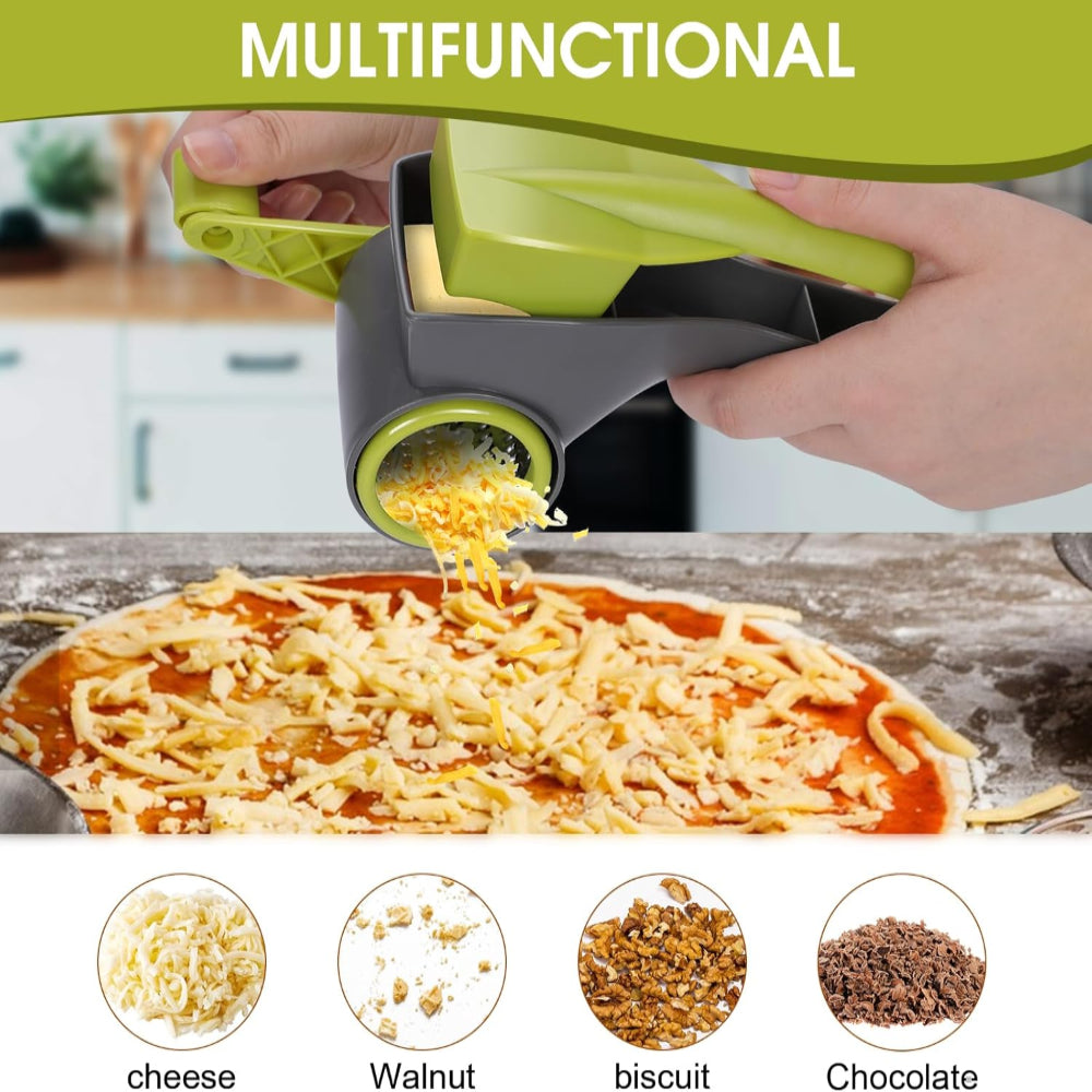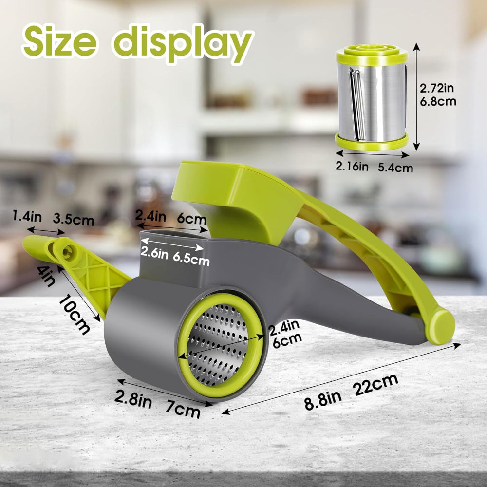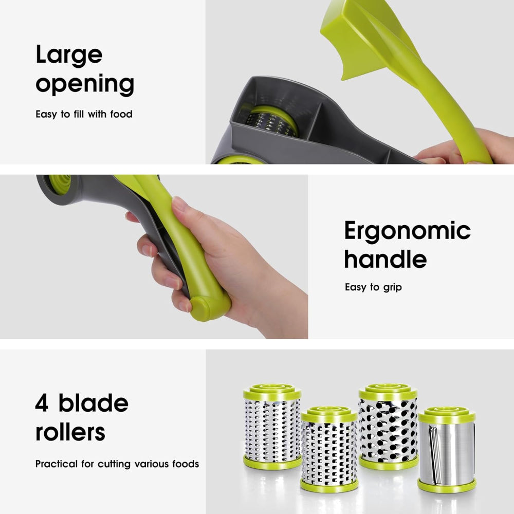• Multi-Function Grater Set – Includes 4 interchangeable stainless steel rollers for slicing, shredding, and grating versatility.
