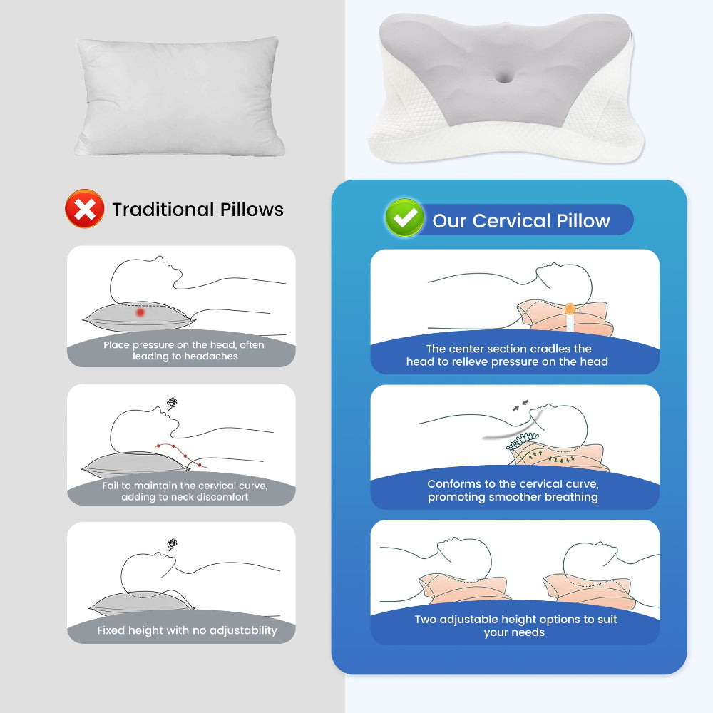 Ergonomic Cervical Design – Supports proper neck and spine alignment during sleep.