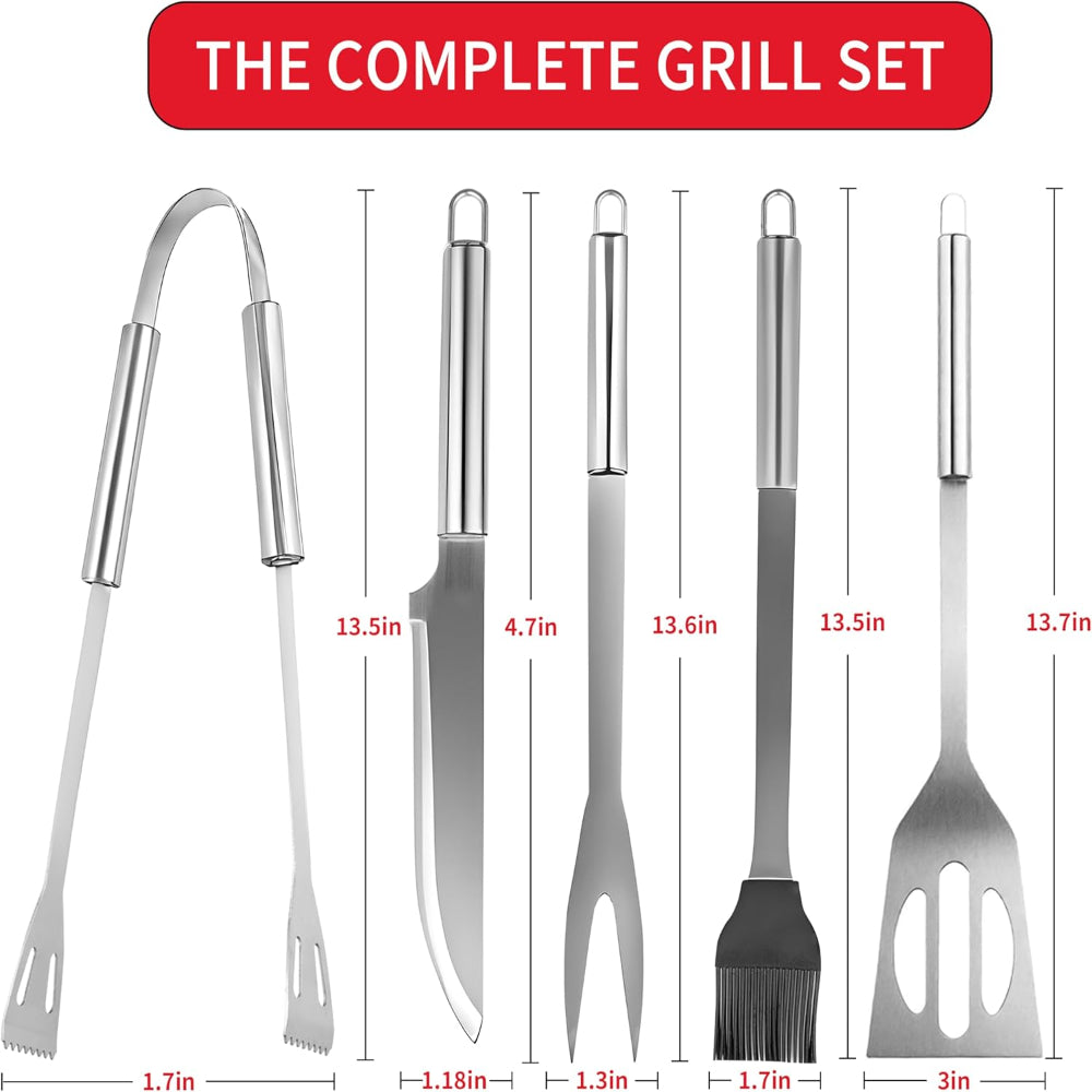 - Complete 5-Piece Set – Includes spatula, grill fork, brush, meat knife, and tongs for versatile grilling tasks.