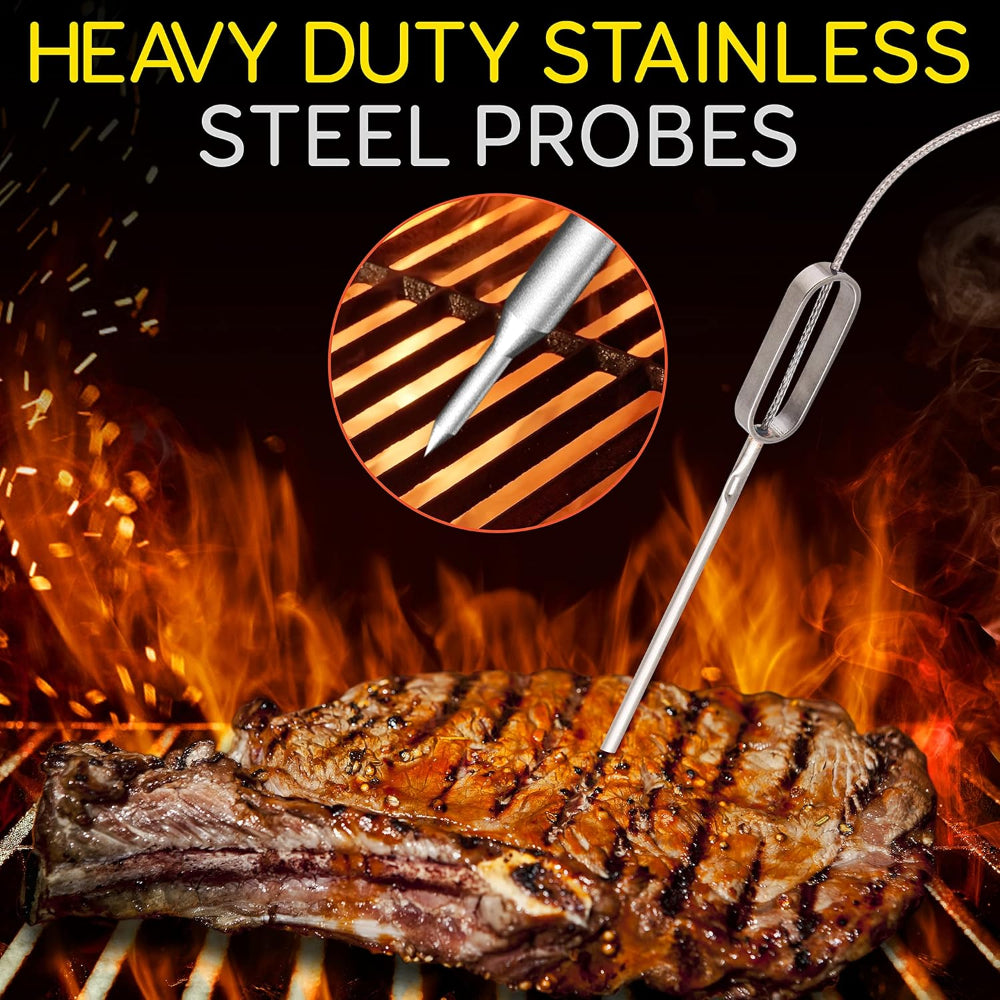 Long Wireless Range: Up to 328 feet max, with 100 feet indoor range, ideal for both backyard BBQs and professional kitchen cooking. Perfect for steaks, smoked meats, and other grilled dishes.