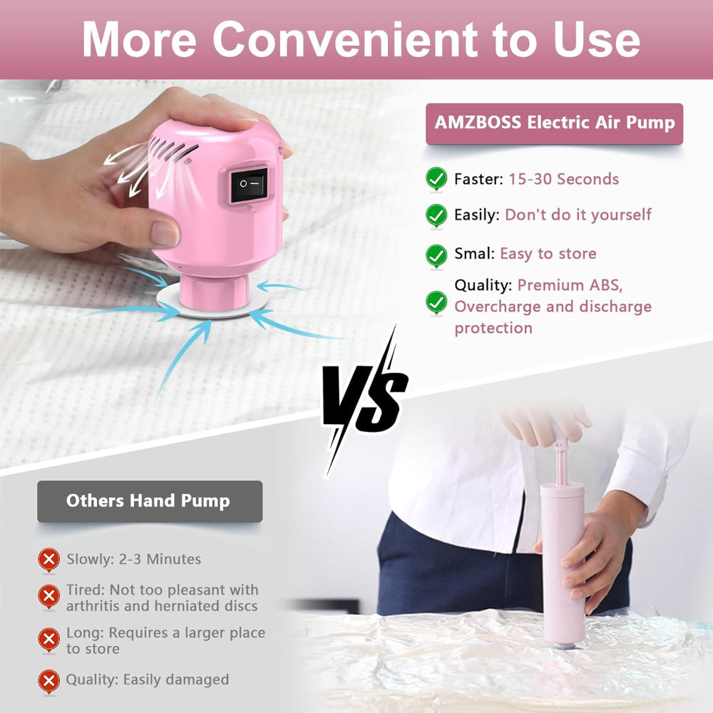 Powerful Vacuum Performance: Industrial-grade motor rapidly removes air from bags in just 30 seconds. Maximizes compression for closets, suitcases, or under-bed storage, ideal for seasonal wardrobe changes or travel packing.