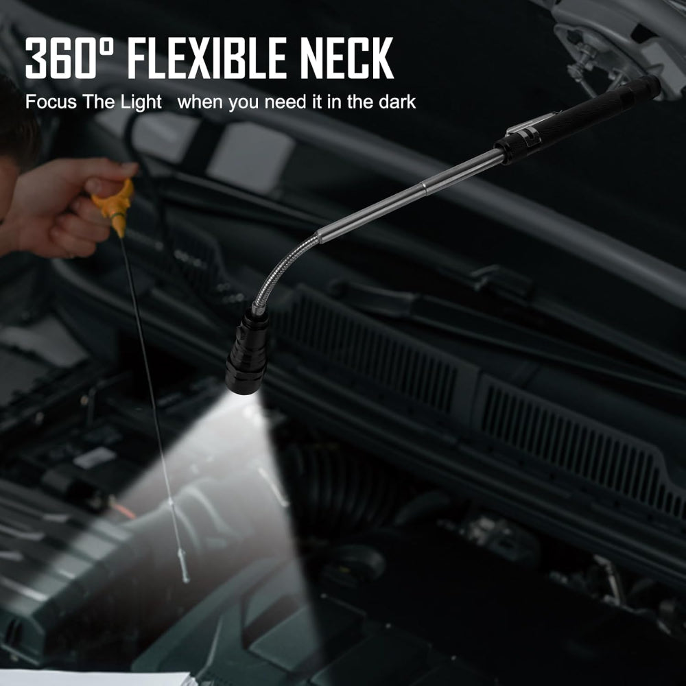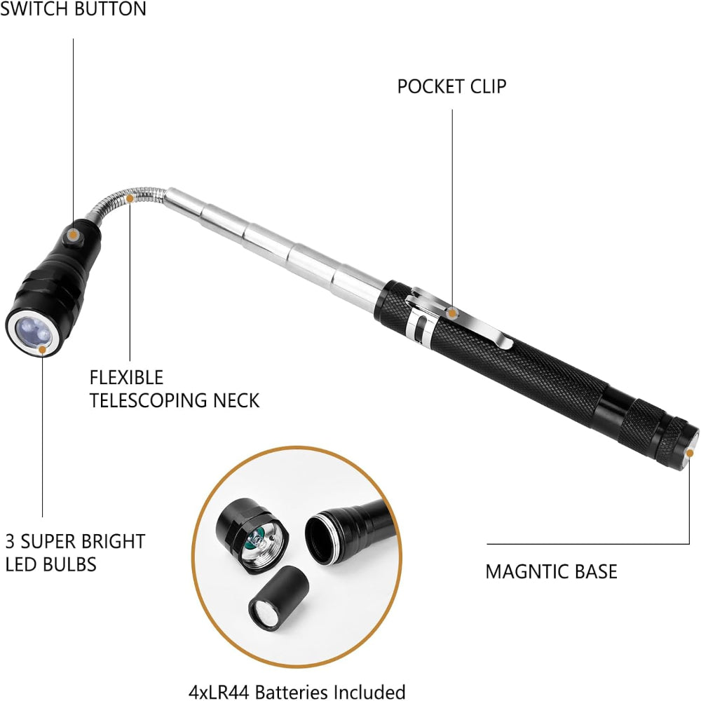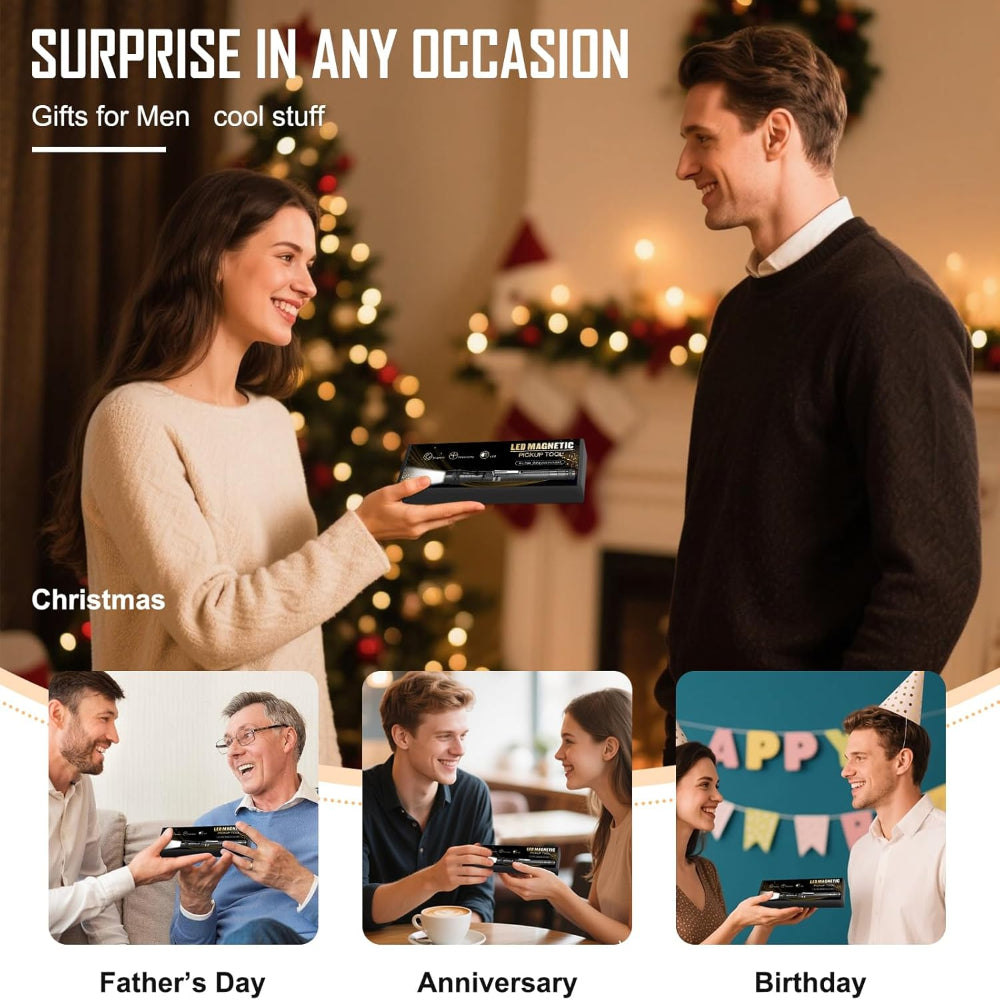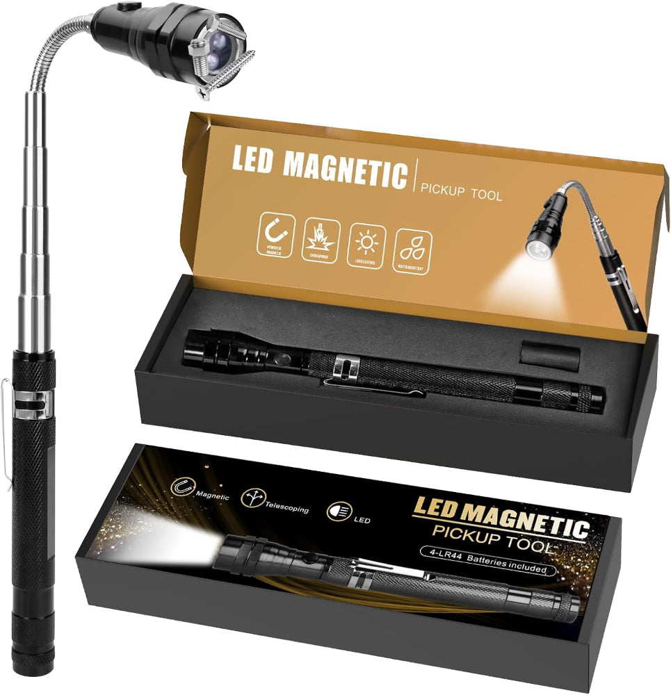 Magnetic Flashlight & Extendable Pickup Tool – Telescoping Gadget for Men, Handyman, Dad, Husband, Christmas Gift - This Magnetic Pickup Tool with Hand-Free Lighting is a versatile and practical gadget designed to make retrieving metal objects easier in tight or hard-to-reach spaces. Equipped with a powerful magnetic head and bright LED lights on a 360° adjustable gooseneck, it illuminates dark areas while securely picking up nuts, bolts, and screws. The extendable design stretches from 6.77 to 22.5 inches, making it ideal for automotive repairs, HVAC work, or various DIY projects, while its durable metal construction ensures long-lasting use. Compact and portable, it’s perfect for mechanics, electricians, campers, and anyone tackling home improvement tasks. Including 4 LR44 batteries, this handy tool also makes a thoughtful gift for Father’s Day, Christmas, birthdays, or any occasion for men who love practical gadgets.