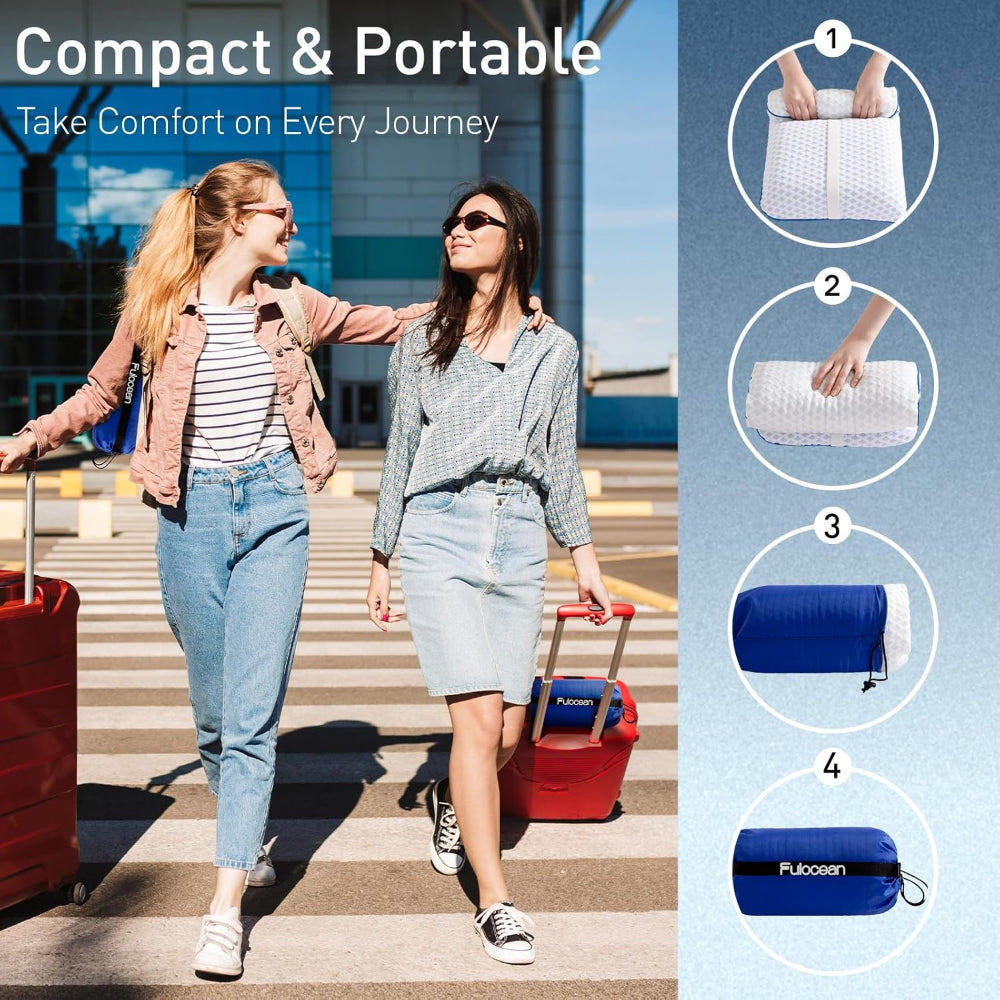 Premium Gel Memory Foam – Breathable gel-infused memory foam provides neck contouring, optimal support, and pressure relief for refreshed sleep anywhere.