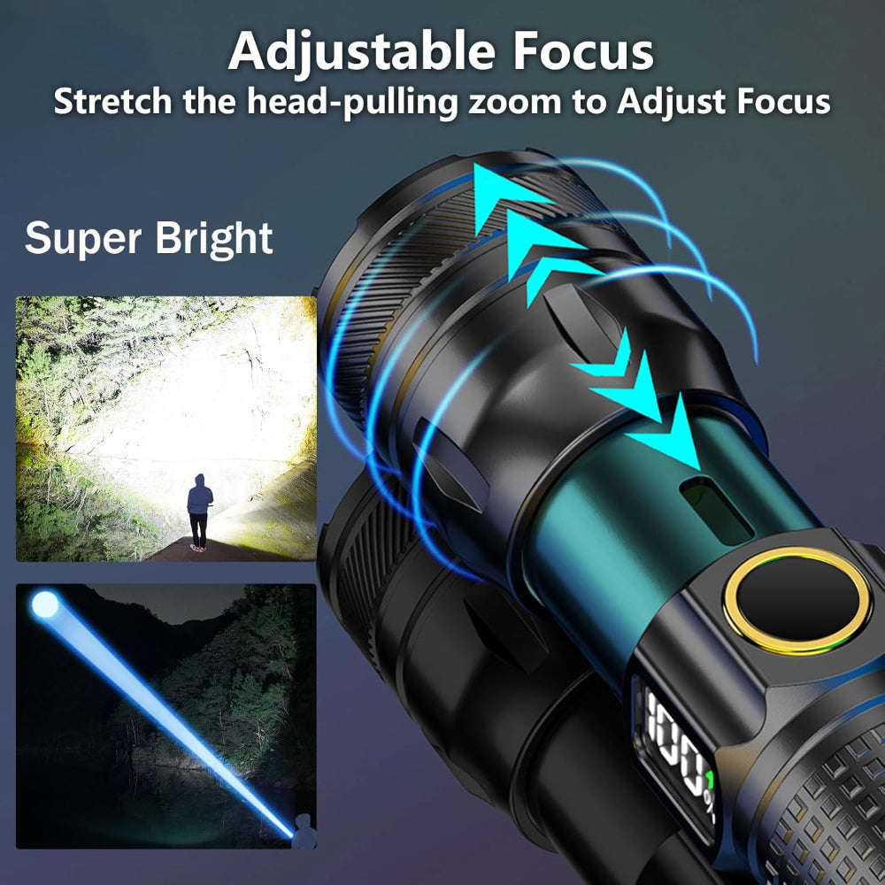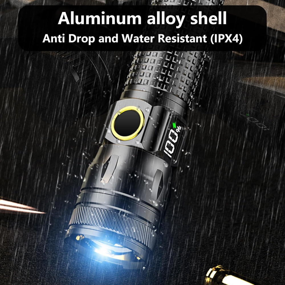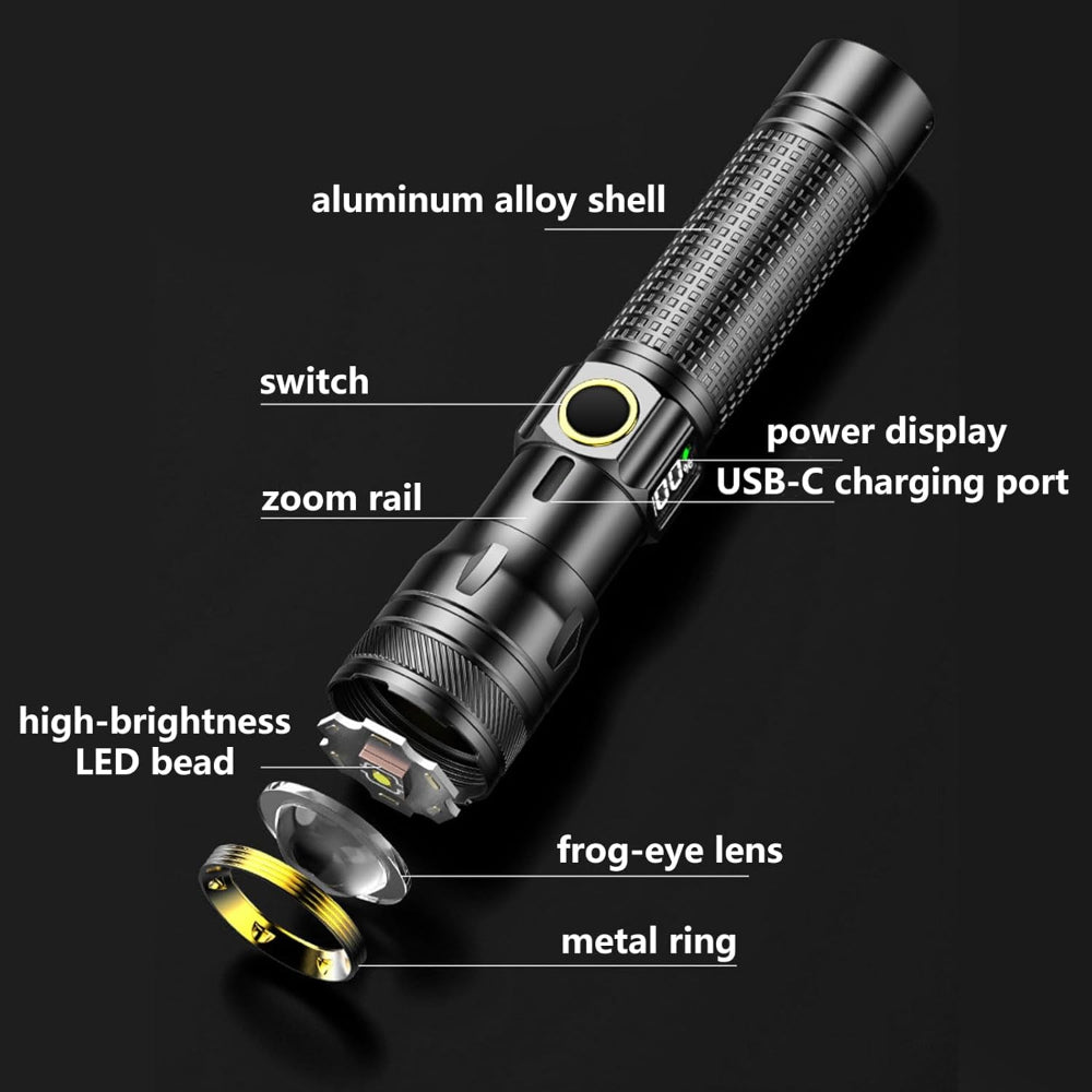 Rechargeable LED Flashlight – High Lumen EDC Use – Zoomable Beam with Digital Power Display – USB-C Charging for Home, Outdoor, Camping & Emergency Survival