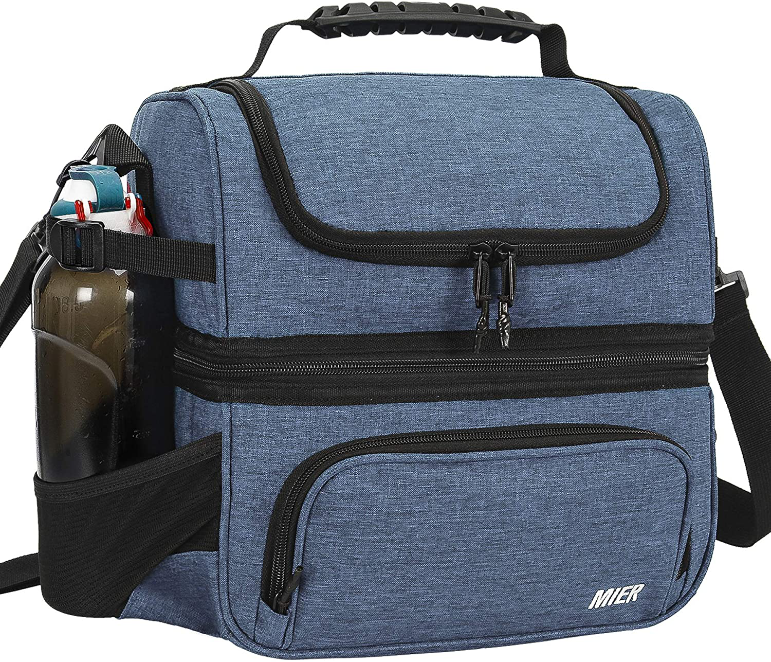 MIER Dual Compartment Lunch Bag Tote with Shoulder Strap for Men and Women Insulated Leakproof Cooler Bag, Bluesteel