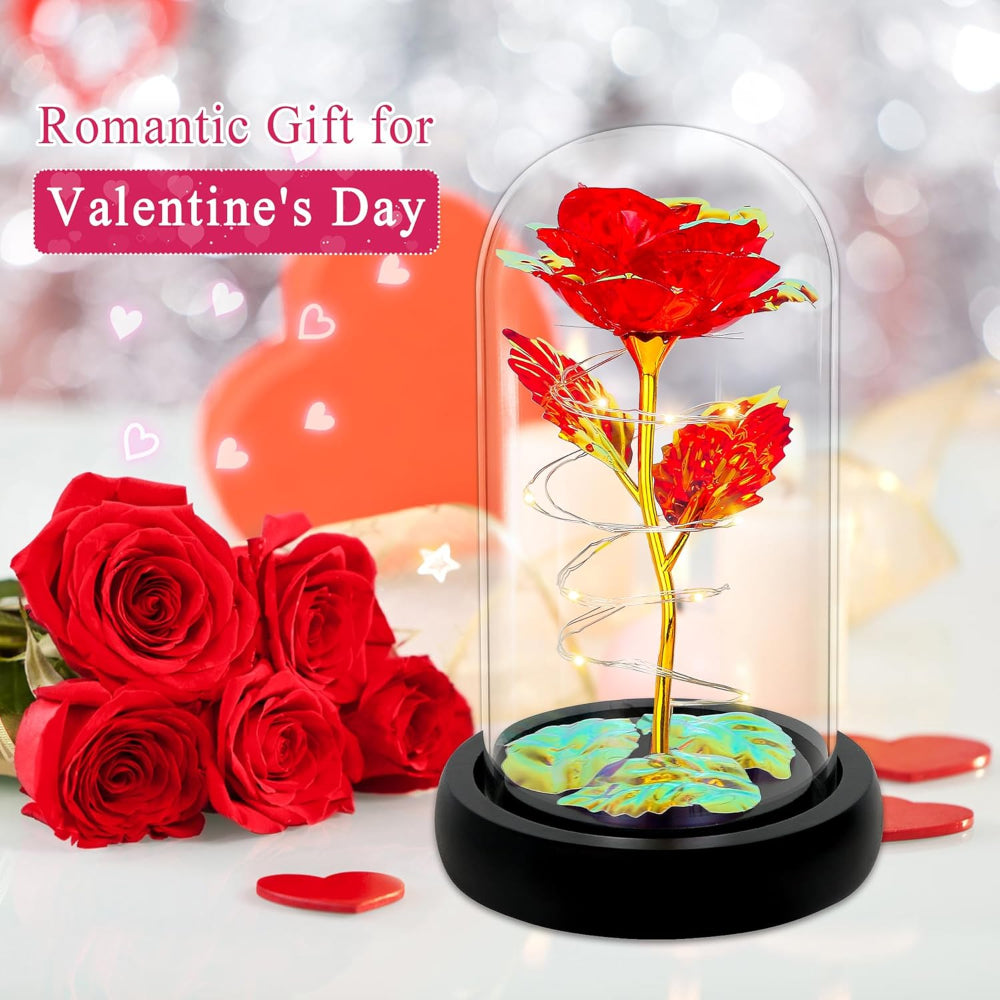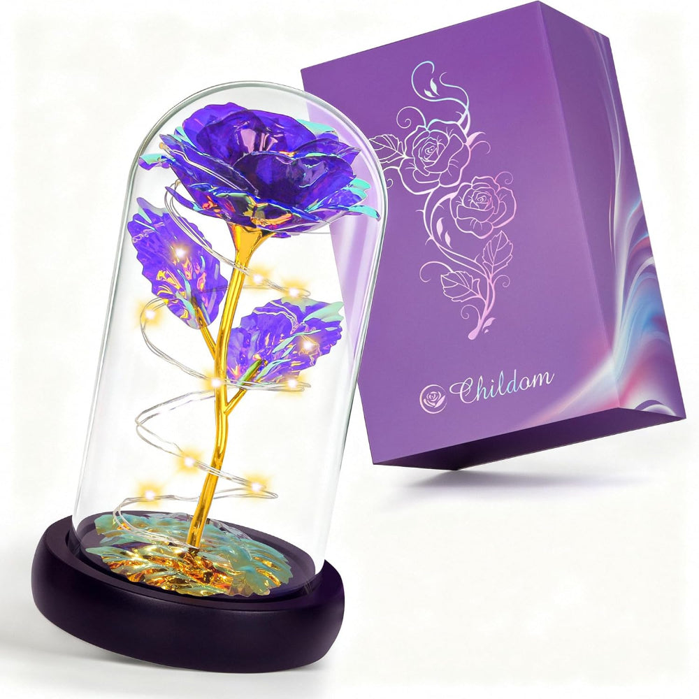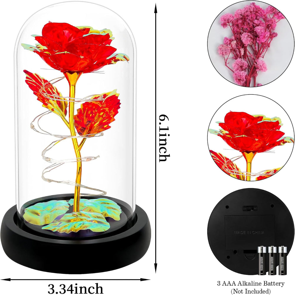 Light-Up Rose in Glass Dome – Gift for Her, Mom, Wife, Grandma, Colorful Rainbow Flowers - Delight the special woman in your life with this Stunning Rainbow Rose in a Glass Dome – a timeless gift that combines elegance, romance, and everlasting beauty. Featuring vibrant artificial roses that never wilt, this 3.34" × 6.1" bloom is wrapped with warm LED twinkle lights (batteries not included), creating a magical glow that enhances any room and sets a romantic or cheerful atmosphere. Perfect for birthdays, Mother’s Day, Valentine’s Day, anniversaries, or just to show appreciation, the rainbow hues symbolize joy, hope, and the uniqueness of your bond. The rose comes elegantly packaged in a gift box, ready to present as a thoughtful, memorable keepsake for moms, wives, girlfriends, grandmas, sisters, or any loved one. With its charming light-up feature and everlasting design, this glass dome rose is a heartfelt way to celebrate love, beauty, and special moments that will be cherished for years.