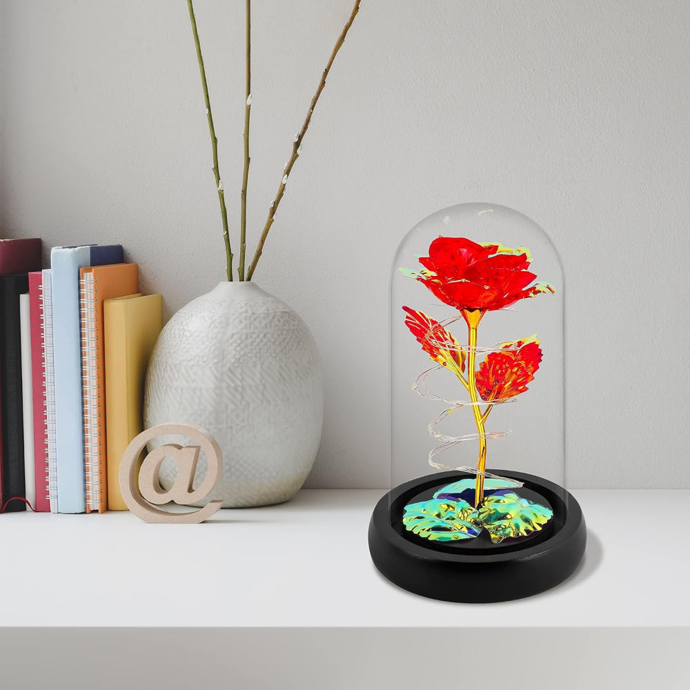 Elegant Glass Dome Display – Crystal-clear dome protects the rose and enhances its charm, perfect for home decor in bedrooms or living rooms.