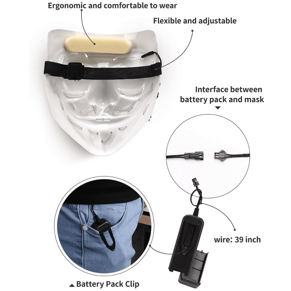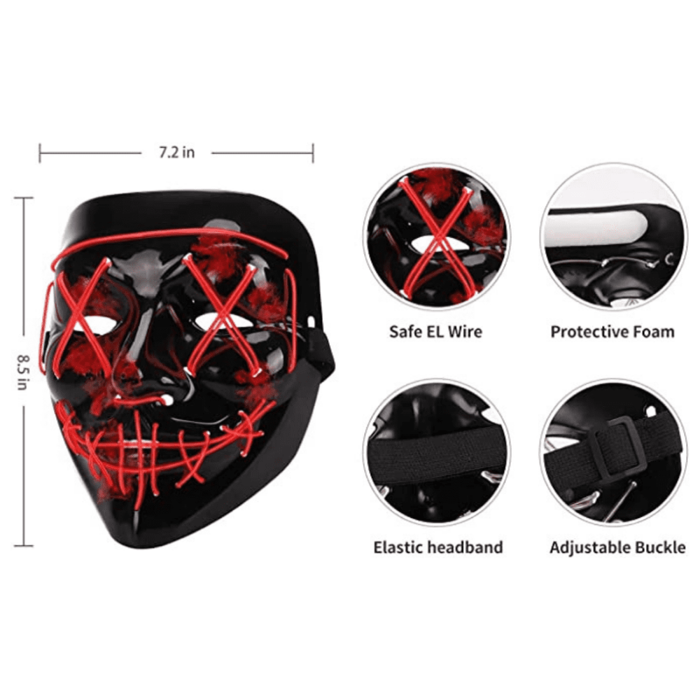 2-Pack Halloween LED Masks – Scary Light Up Face Masks with 3 Lighting Modes for Costume & Cosplay - Turn heads this Halloween with these 2-pack scary LED light-up masks, perfect for costumes, cosplay, and parties. Featuring 3 lighting modes and durable EL wire, these masks deliver a bright, eerie glow that’s sure to stand out. Made from eco-friendly, adjustable materials for a comfortable fit on men, women, and kids alike. Ideal for Halloween night, masquerade events, festivals, or themed parties.