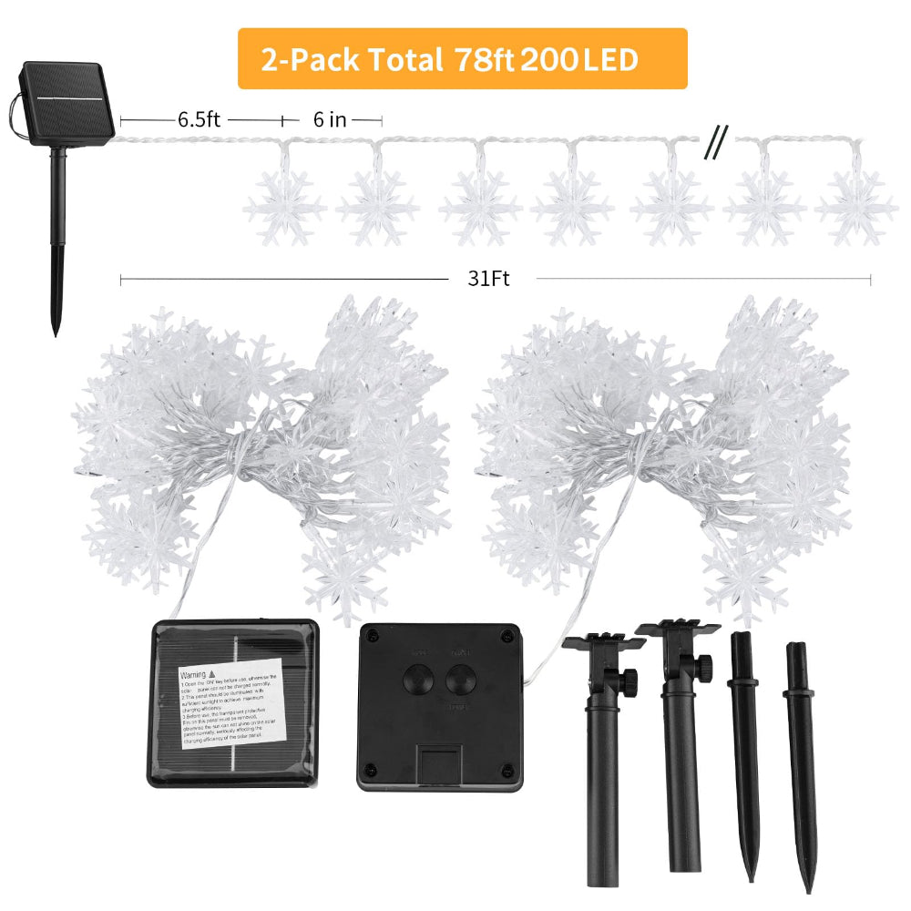 2-Pack Solar Snowflake String Lights – 100 LED 39FT Outdoor Waterproof Fairy Lights with 8 Lighting Modes