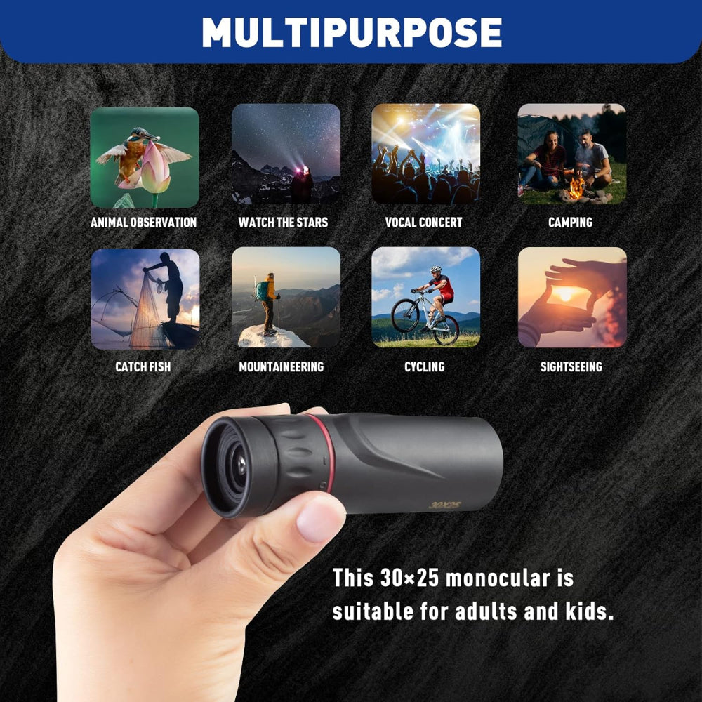 Mini Monocular Telescope – 30x25 HD High-Powered Monocular for Adults, Compact Handheld Scope for Stargazing & Hunting - Explore distant views with this 30x25 high-powered mini monocular telescope. Designed for adults who love the outdoors, it delivers crisp HD clarity for stargazing, hunting, hiking, and sightseeing. The compact and lightweight design fits easily in your pocket or backpack, making it perfect for travel. Built for durability and comfort, it ensures clear, stable vision wherever adventure takes you.
