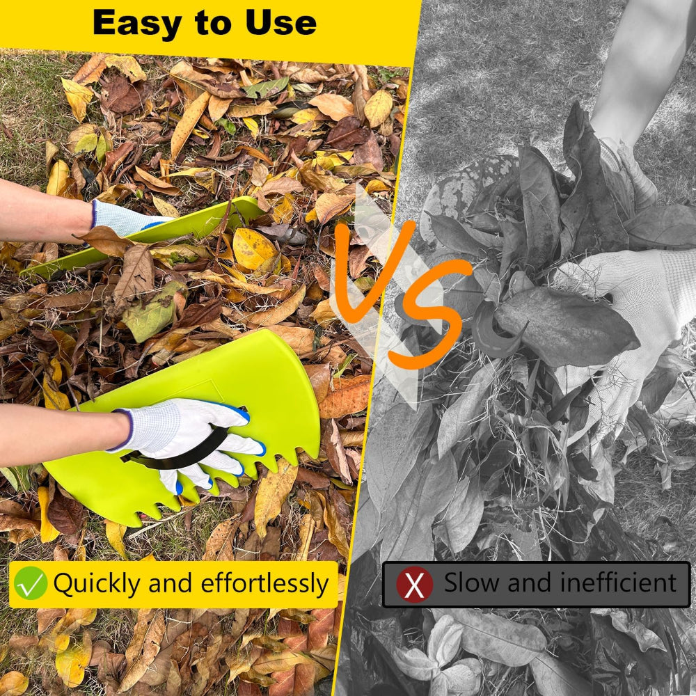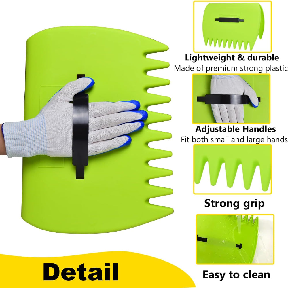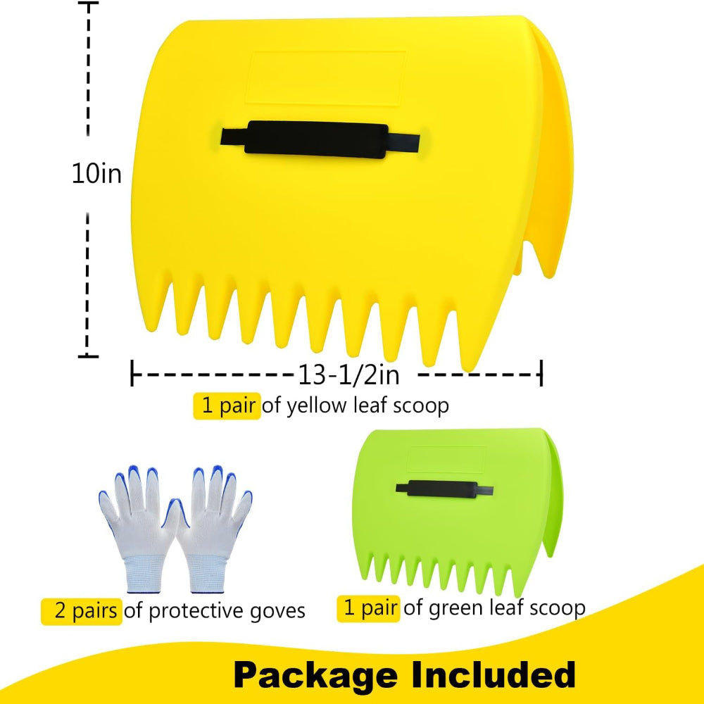 2 Sets Leaf Scoops with Gloves – Large Hand Rakes & Claws for Picking Up Leaves, Grass & Yard Waste - Make yard cleanup faster and easier with these 2 sets of lightweight plastic leaf scoops and rakes. Designed with large claw-style grabbers, they let you pick up leaves, clippings, and grass with ease. Each set comes with a pair of gloves for added comfort and protection while working outdoors. Durable, reusable, and brightly colored in yellow and green, they’re perfect for fall cleanup, gardening, or everyday lawn care.