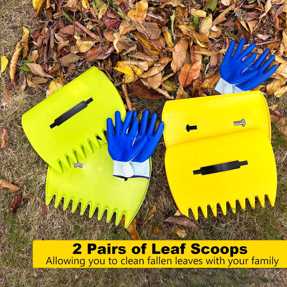 2 Sets Leaf Scoops with Gloves – Large Hand Rakes & Claws for Picking Up Leaves, Grass & Yard Waste