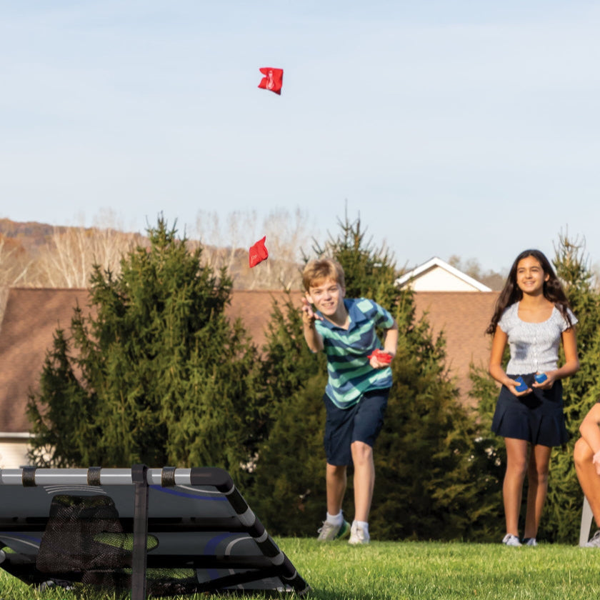 Versatile Blue Targets: The blue targets of the Combo Set quickly convert from Ladderball to Cornhole to Washers in just seconds, offering a seamless transition between games. Additionally, the targets easily convert to Bean Bag Toss, adding to the versatility of this all-in-one tailgate gaming solution.