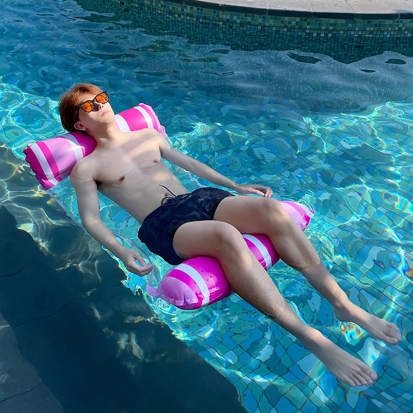 - WONDERFUL CHOICE IN HOT SUMMER: After inflating, roll the hammock for easy carry. Zcaukya inflatable pool float chair is great ideal for a variety of fun water activities, such as swimming pool floating, water park and summer parties. Do not hesitate to purchase and have endless fun.