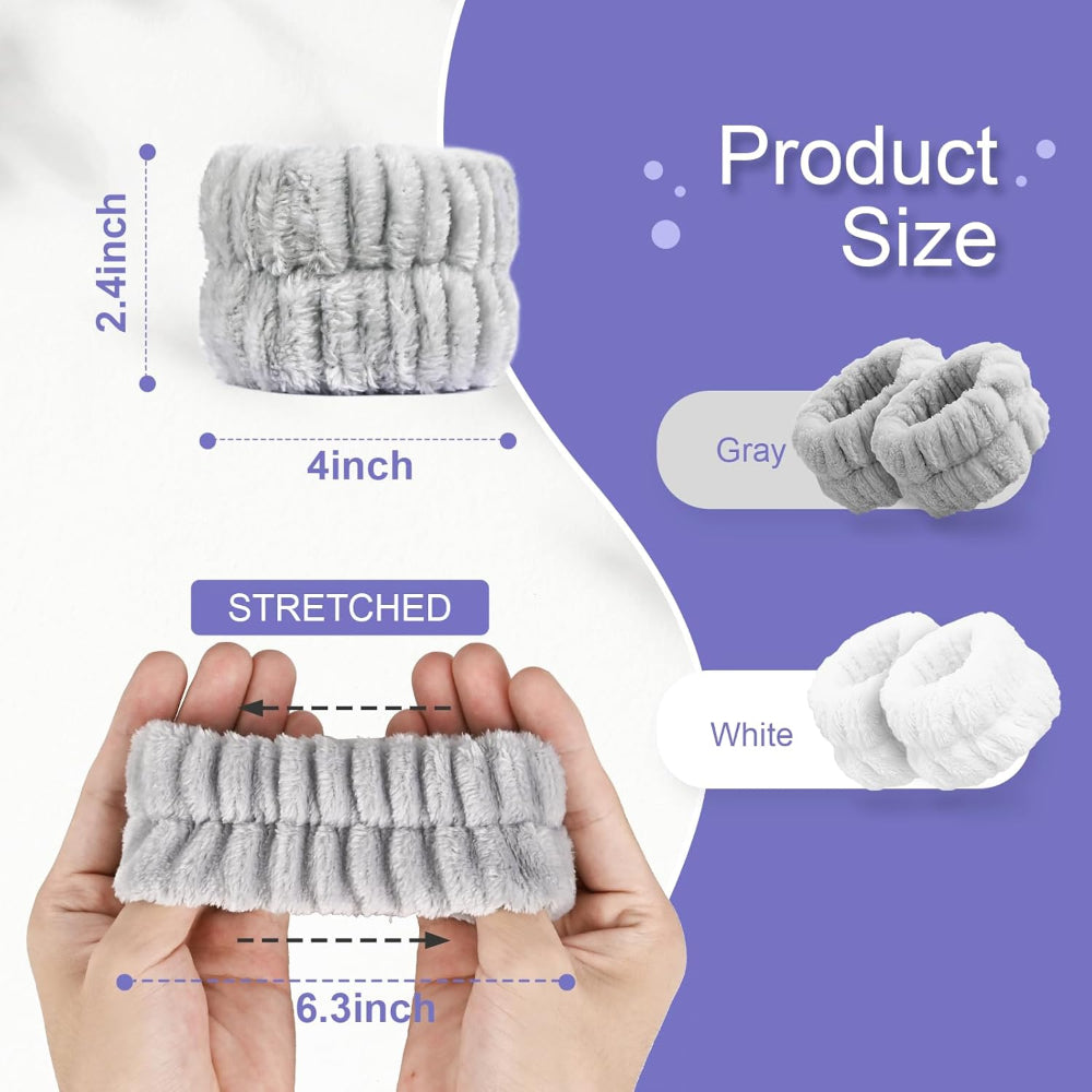 4-Piece Microfiber Wrist Bands – Absorbent Face Washing Wristbands for Women – Water-Blocking Towel Cuffs for Skincare & Cleansing - Make face washing cleaner and more comfortable with these 4-Piece Microfiber Wrist Bands, designed to absorb water and prevent spills from running down your arms. Made from soft, highly absorbent microfiber material, these towel wristbands quickly soak up moisture to keep sleeves, countertops, and floors dry. The stretchy, snug-fit design fits most wrist sizes comfortably without slipping or feeling tight. Ideal for face washing, skincare routines, makeup removal, or spa use at home, they are reusable, durable, and easy to clean. Practical and stylish, these absorbent wristbands are a simple yet effective solution for mess-free daily beauty routines.