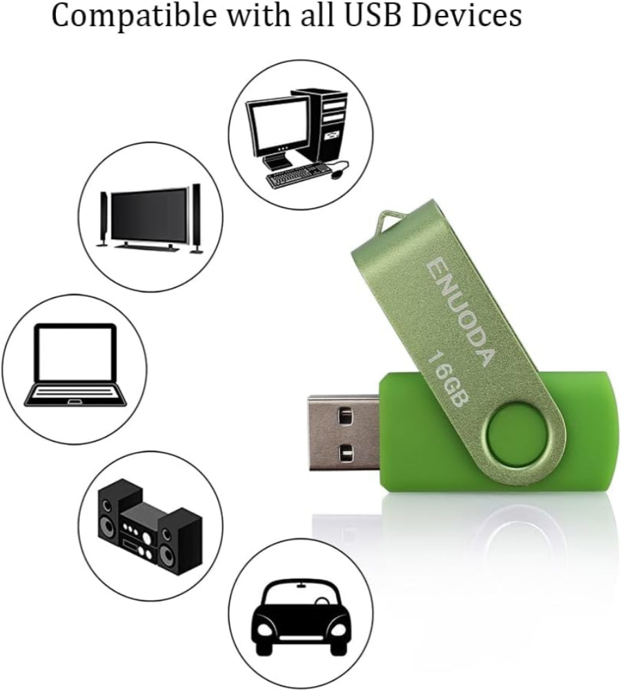 5-Pack USB Flash Drives – 16GB Thumb Drives with Swivel Design, USB 2.0 Memory Sticks for Storage and Backup - Keep your data organized and accessible with this 5 pack of 16GB USB 2.0 flash drives – available in five vibrant colors: black, purple, green, blue, and red, perfect for easily sorting files. Designed for ultimate convenience, these plug-and-play memory sticks require no software installation, allowing quick storage or transfer of videos, photos, music, movies, manuals, and software. Featuring wide compatibility with Windows 98/NT/ME/2000/XP/7/8.1/10, Linux, and Mac OS 10.3, they work seamlessly with USB 2.0 and 1.1 ports. Built for durability and portability, each drive includes a 360° rotating metal clip, LED indicator light, and capless ABS plastic body to protect the port and prevent loss. Enjoy high-speed data transfer with read speeds up to 15 MB/s and write speeds up to 7 MB/s, making it easy to move large files quickly for school, work, or everyday use.