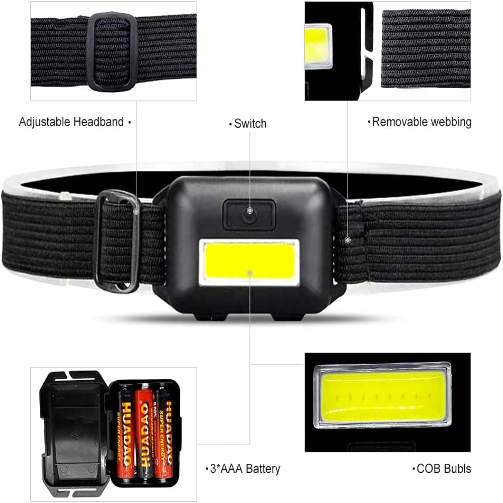 8 Pack LED Headlamps for Adults and Kids, Ultra Bright Head Lamp with 3 Modes - Includes Batteries - Light up every task with this ultra-bright 8-pack of hands-free LED headlamps designed for work, outdoor adventures, and everyday use. Delivering up to 800 lumens with a wide 160° beam, the COB LED design offers three light modes to handle everything from close-up jobs to emergency situations. Built with an IPX4 waterproof rating and durable ABS housing, these headlamps perform reliably in rain, trails, and tough outdoor conditions. Lightweight, adjustable, and comfortable for all ages, they’re perfect for sharing with family and friends on camping trips, hikes, or home projects.
