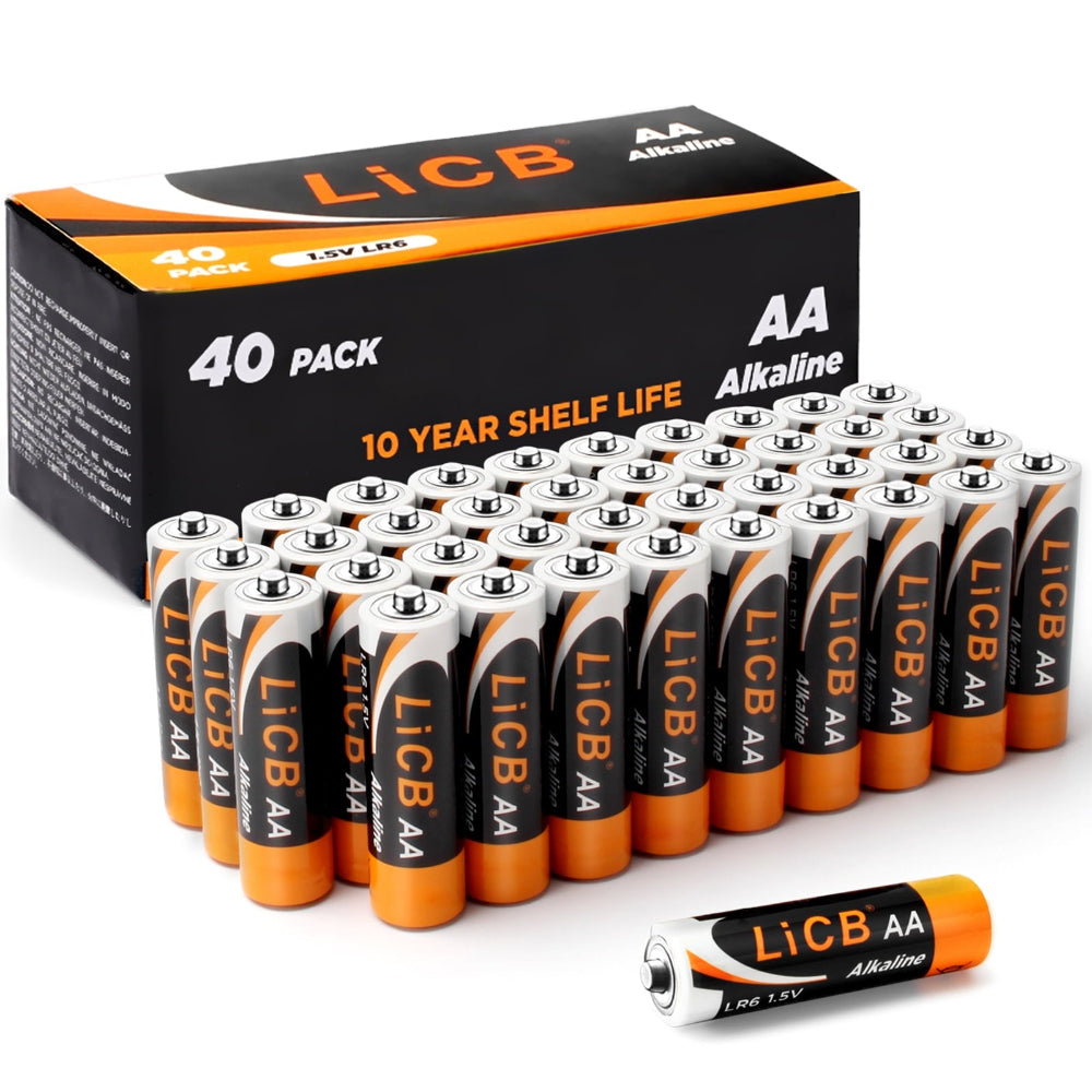 AA Batteries 40-Pack – 1.5V Long-Lasting Alkaline Double A Batteries for Everyday Devices - Power your devices with these premium AA alkaline batteries engineered for long-lasting performance and reliability. Delivering a full 1.5V charge, they’re ideal for everyday electronics like remotes, toys, flashlights, and more. With strict quality control, CE and ROHS certification, and a 10-year shelf life, these batteries provide dependable energy when you need it most. Safe, mercury-free, and built to last, this 40-pack ensures you’re always prepared at home, work, or on the go.