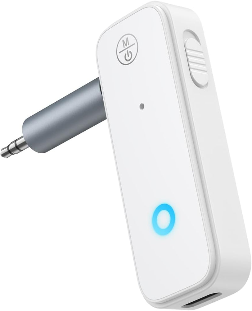 Bluetooth AUX Adapter – 2-in-1 Transmitter Receiver with Hands-Free Calling, Noise Cancelling & 5.3 Wireless Audio - Cut the cord and enjoy wireless audio anywhere with this compact Bluetooth AUX adapter that works as both a transmitter and receiver. Featuring Bluetooth 5.3 technology, it delivers fast, stable connections and clear sound for music, calls, and navigation up to 33 feet away. The built-in microphone and multifunction button enable safe, hands-free calling while driving, keeping you focused on the road. Portable and plug-and-play, this adapter automatically reconnects and makes it easy to upgrade car audio systems, home stereos, or wired headphones to wireless freedom.