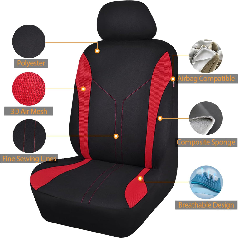 Full Set Car Seat Covers – Front & Rear Bench Polyester Mesh Fabric – Easy Install SUV Car Covers - Protect and refresh your car interior with this Universal Car Seat Cover, designed to fit most low bucket car seats and accommodate side airbags for safety. Easy to install, it requires no seat dismantling and works seamlessly with split rear benches in 40/60, 50/50, or 60/40 configurations. Combining classic style with modern fashion elements, this seat cover instantly upgrades your car’s interior while providing durable protection against spills, stains, and wear. Perfect for daily use, it adds comfort, style, and practicality, making it a simple way to enhance both the look and longevity of your vehicle seats.