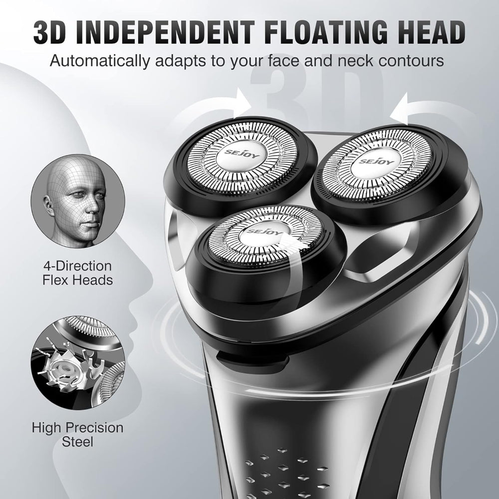Men’s Electric Shaver – Cordless Rechargeable Razor with Pop-Up Trimmer, 3D Floating Head, Waterproof IPX7, and USB Charging
