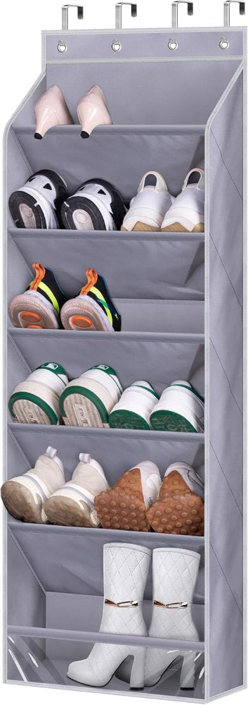 Over The Door Shoe Organizer – Large Hanging Shoe Rack for Closet Door Storage, Fits Boots & Big Shoes - Maximize your closet space with this over-the-door shoe organizer designed to fit large shoes and boots. Featuring multiple spacious pockets, it easily hangs on standard doors to keep footwear organized and off the floor. The durable fabric and reinforced stitching ensure long-lasting use, while the neutral grey color blends seamlessly with any décor. Perfect for closets, bedrooms, or entryways, it’s a smart storage solution for families and shoe lovers.