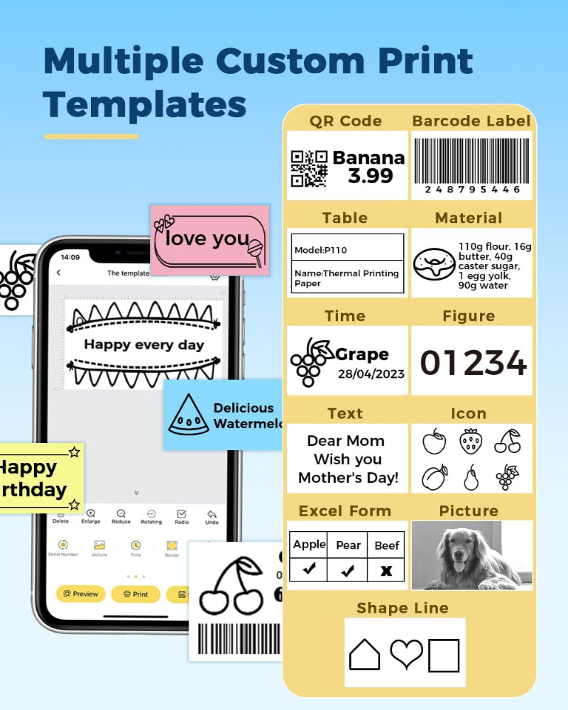 Versatile Labeling – Supports QR codes, barcodes, tables, text, icons, pictures, and more for multiple uses.