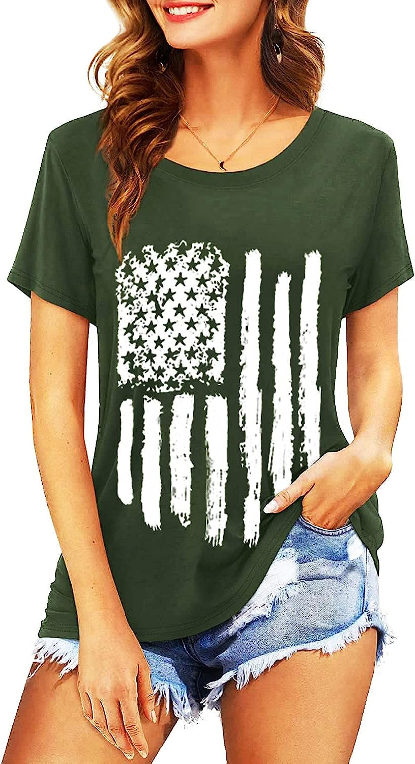 Women's Casual American Flag T Shirt 4th of July Short Sleeve Tee USA Patriotic Summer Blouse Tops…