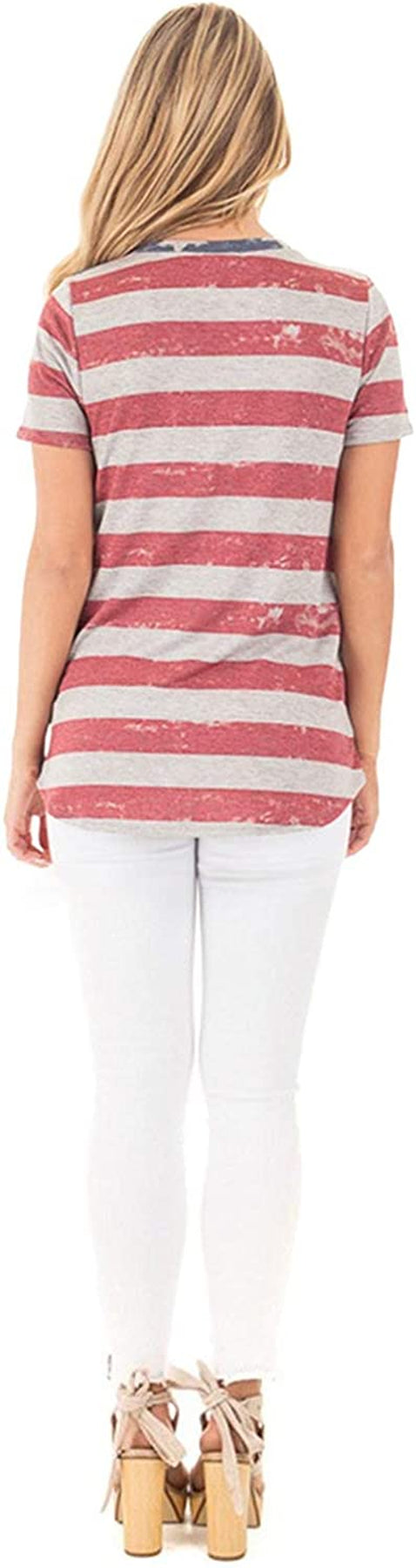 USA Letters American Flag Shirt for Women 4th of July Shirt Tops Womens Patriotic Tops Tshirt 4th of July Stars Stripes 2 White Striped Sport Design