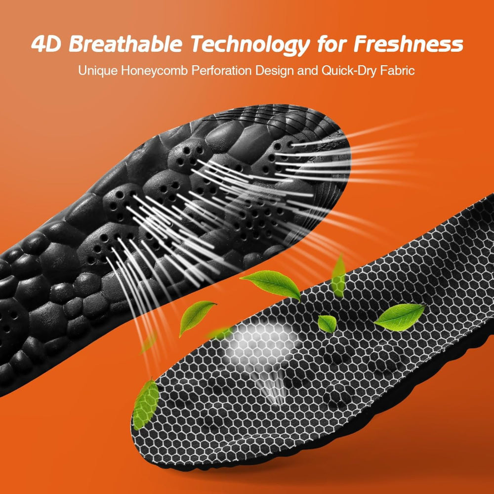 Women's Insoles – Memory Foam 4D Cloud-Soft Comfort, Arch Support, Trim-to-Fit, Fresh-Tech Fabric for Foot Comfort and Fatigue Relief - Experience all-day comfort with these 4D Cloud-Soft Comfort Soles for Women, designed to provide superior support and reduce foot fatigue. Made with premium memory foam and breathable Fresh-Tech fabric, these insoles mold perfectly to your feet while keeping them cool and dry. The arch support design enhances stability and promotes proper alignment, making every step feel cushioned and supported. Trim-to-fit functionality ensures a custom fit for a wide range of shoe sizes and styles, from casual sneakers to work shoes. Lightweight yet durable, these insoles are perfect for daily wear, long walks, or standing for extended periods. Upgrade your footwear effortlessly and enjoy enhanced foot comfort with every step.