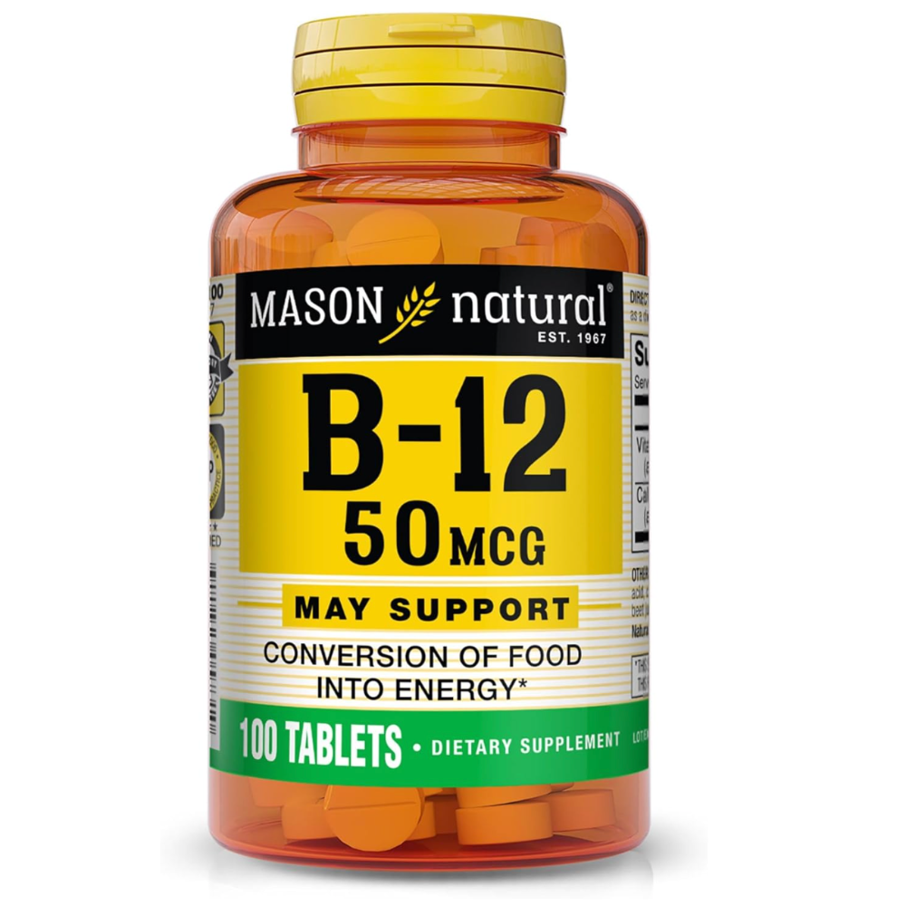 Vitamin B12 50mcg with Calcium – Dietary Supplement for Natural Energy Support, 100 Tablets, 100-Day Supply - Boost energy and support overall wellness with MASON NATURAL Vitamin B12 50 mcg with Calcium – a convenient dietary supplement designed to help maintain natural energy levels. Each tablet provides 50 mcg of Vitamin B12 combined with calcium to support healthy bones and metabolic function. With 100 tablets in a single pack, this 100-day supply is perfect for daily use, helping you stay energized and active. Made with quality ingredients, it’s suitable for adults seeking to support energy, vitality, and general health. Easy to incorporate into your routine, this supplement is a simple and effective way to promote overall wellness.