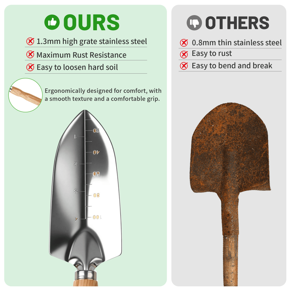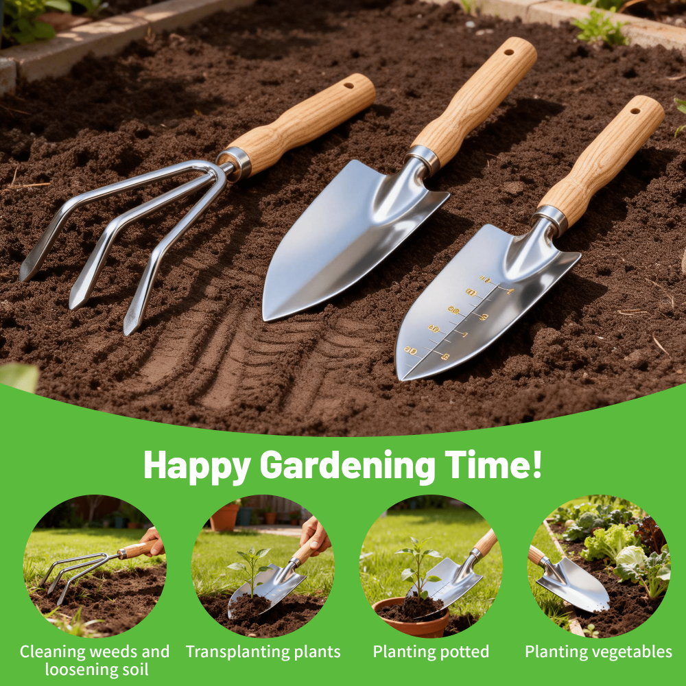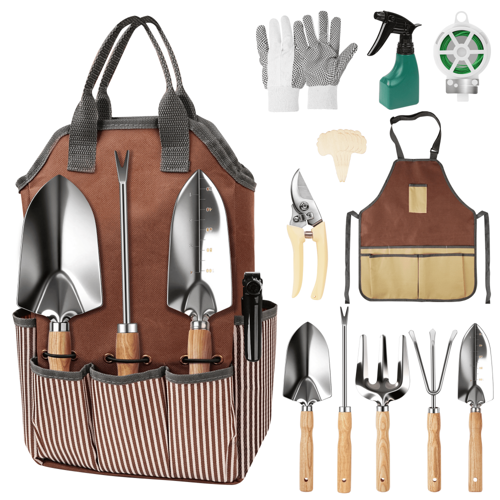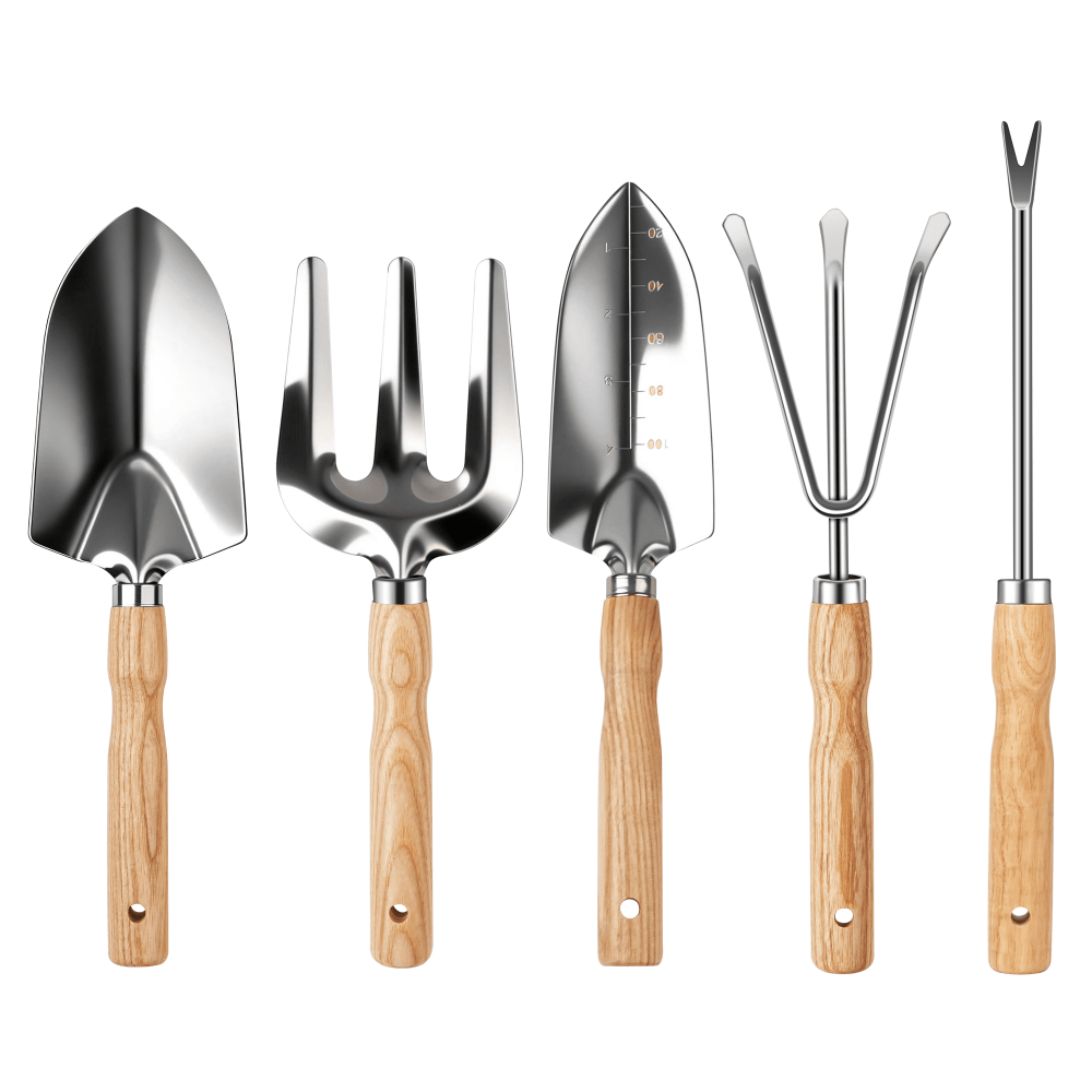 - Complete Tool Set – Includes trowel, transplanter, cultivator, weeder, and hand rake.