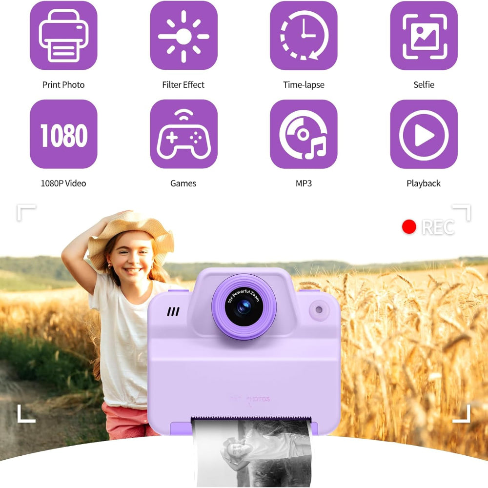 Instant Print Camera – Photo Printing Toy Camera for Girls & Boys – Easy-Use, No-Setup Design - This kids instant camera makes capturing memories fun and easy, giving little one's instant photo prints they can hold and share right away. Designed for children ages 3–12, this playful toy camera encourages creativity with simple controls and a kid-friendly layout that’s easy for small hands to use. The compact design makes it perfect for travel, playdates, birthdays, and everyday adventures. Its durable build withstands drops and rough handling, ensuring long-lasting use for active toddlers and young kids. With instant printing and fun photo features, it’s an ideal gift that inspires imagination while preserving precious moments.