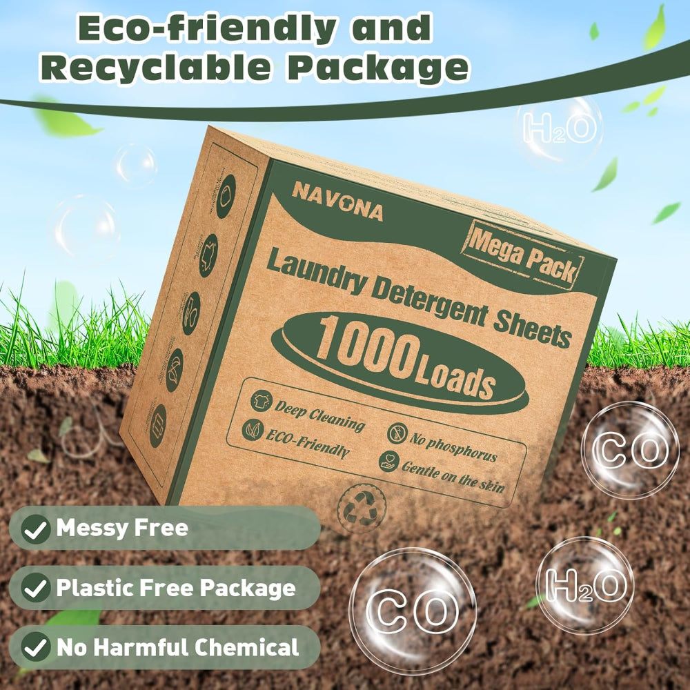 1000-Load Laundry Detergent Sheets – Eco Friendly Fresh Scent Washer Sheets for Home Travel - Simplify laundry day with these 1000-load laundry detergent sheets designed for powerful cleaning in a compact, mess-free format. Made with an eco-friendly design, these detergent sheets help reduce bulky plastic containers while delivering effective cleaning performance for everyday clothes, towels, and linens. The fresh scent leaves laundry smelling clean and crisp, while the lightweight sheet format makes storage easy in homes, dorms, apartments, or travel bags. Easy to use with no measuring required, these sheets dissolve quickly in water for convenient washing. Ideal for busy households and small spaces, they offer a simple, efficient, and space-saving laundry solution.