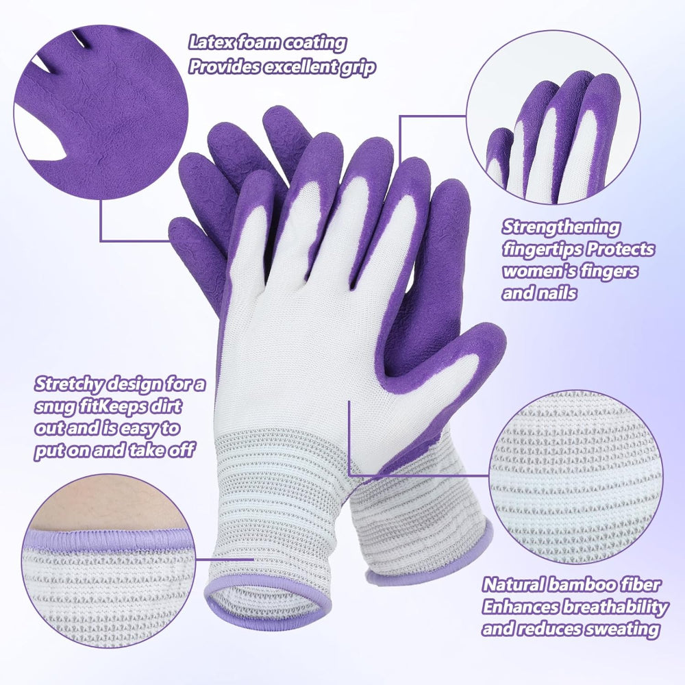 2-Pack Gardening Gloves – Rubber-Coated Outdoor Work Gloves with Grip, Breathable Protective Yard Gloves for Men & Women, Green & Purple - Protect your hands while tackling outdoor tasks with this 2-Pack Gardening Gloves Set – perfect for women and men who love gardening or yard work. Made with breathable fabric and rubber-coated palms, these gloves provide excellent grip and dexterity for planting, pruning, weeding, and general outdoor chores. The durable construction shields hands from dirt, scratches, and minor injuries while keeping them comfortable and cool during extended use. Available in vibrant green and purple, they’re practical, stylish, and easy to clean for repeated use. An essential addition to any gardener’s toolkit, these gloves combine protection, comfort, and performance for everyday gardening tasks.