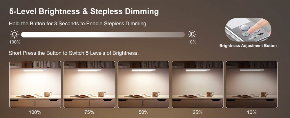 5 Brightness Levels – Adjust the light intensity to match your needs.