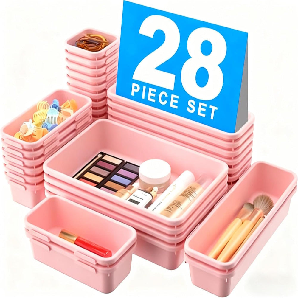 28 Piece Drawer Organizer Set for Office or Bathroom – Desk and Vanity Storage Solution for Organization