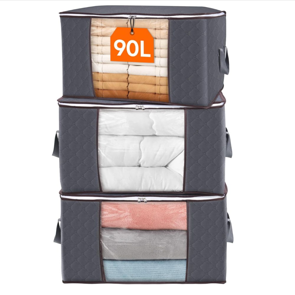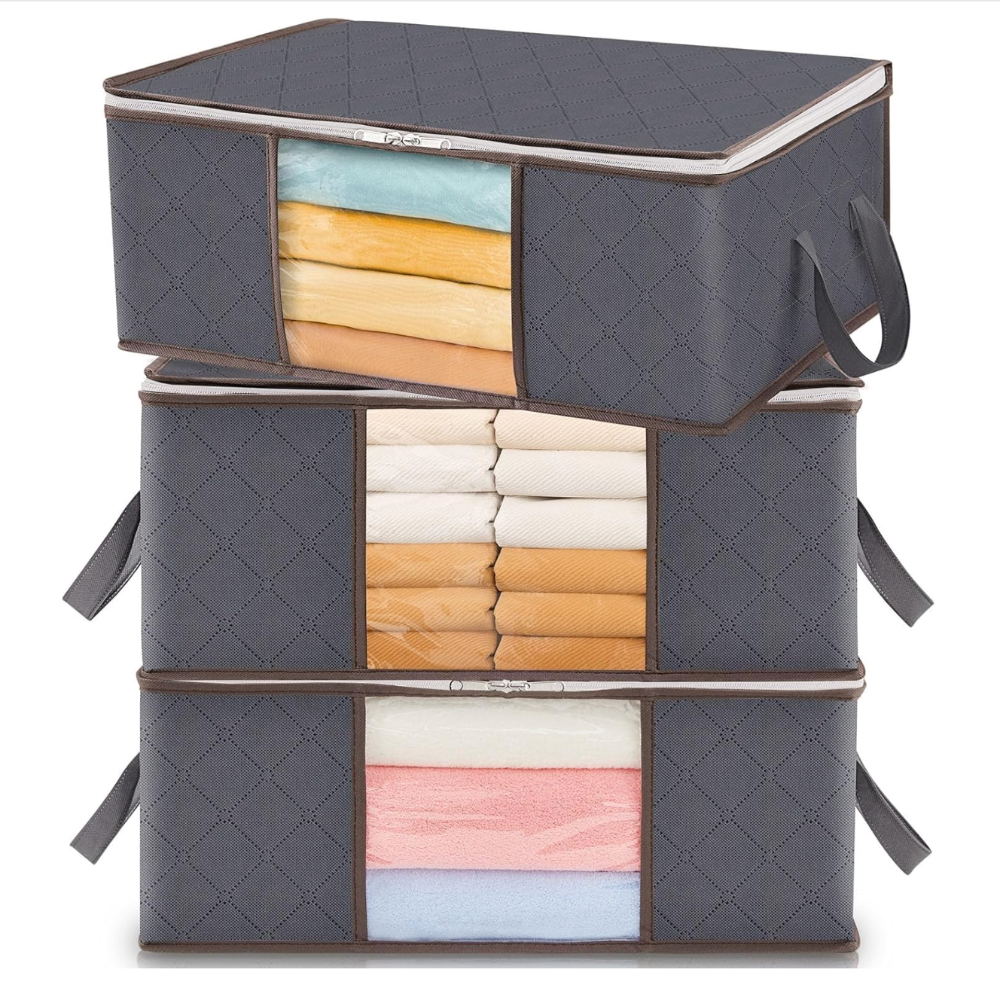 3-Pack Storage Set – Includes three spacious clothes storage bins, perfect for organizing blankets, comforters, sweaters, and seasonal clothing.
