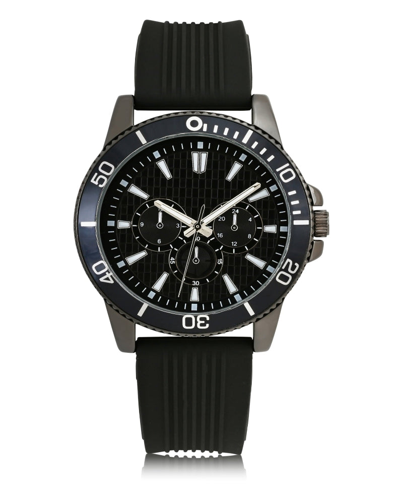 3-Piece Men’s Watch and Bracelet Set – 46mm Black Rubber Chronograph with Beaded and Cord Bracelets - Elevate your style with this 3-piece men’s watch and bracelet set, featuring a 46mm watch with a sleek black rubber strap and faux black chronograph dial, perfect for everyday wear or special occasions. The set includes two matching bracelets – one stretchy beaded and one chord bracelet – designed for effortless layering and a coordinated look. Crafted from durable materials, this set offers long-lasting wear and comfort, while the adjustable strap ensures a perfect fit for most wrist sizes. Ideal for casual outfits, office attire, or evening events, this versatile set combines function and fashion seamlessly. Upgrade your accessories collection with this stylish, ready-to-wear ensemble that blends modern design with timeless appeal.