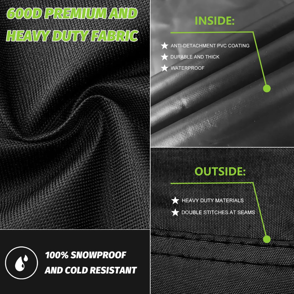 Heavy-Duty 600D Polyester Oxford – Provides durable, waterproof protection against ice, snow, and frost.