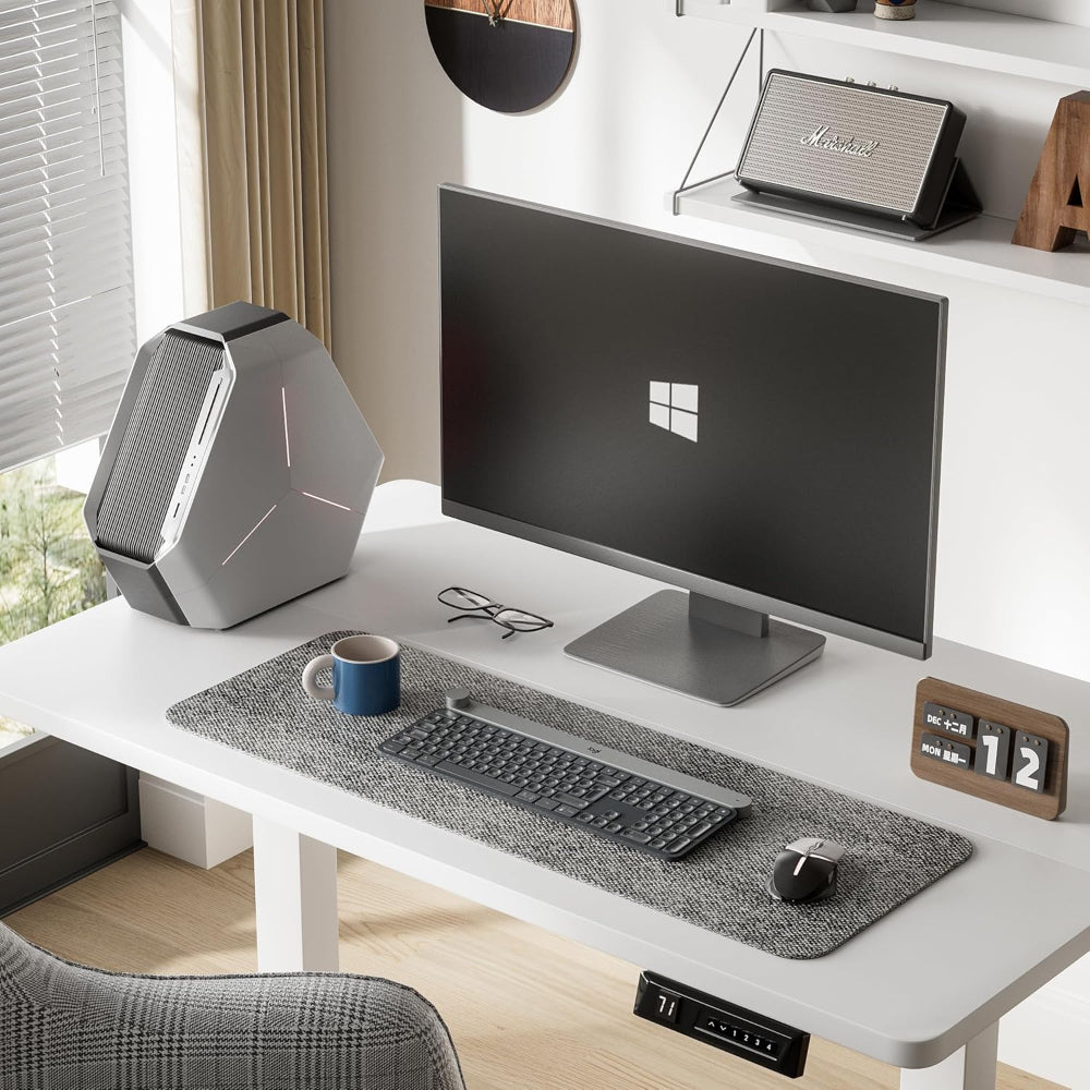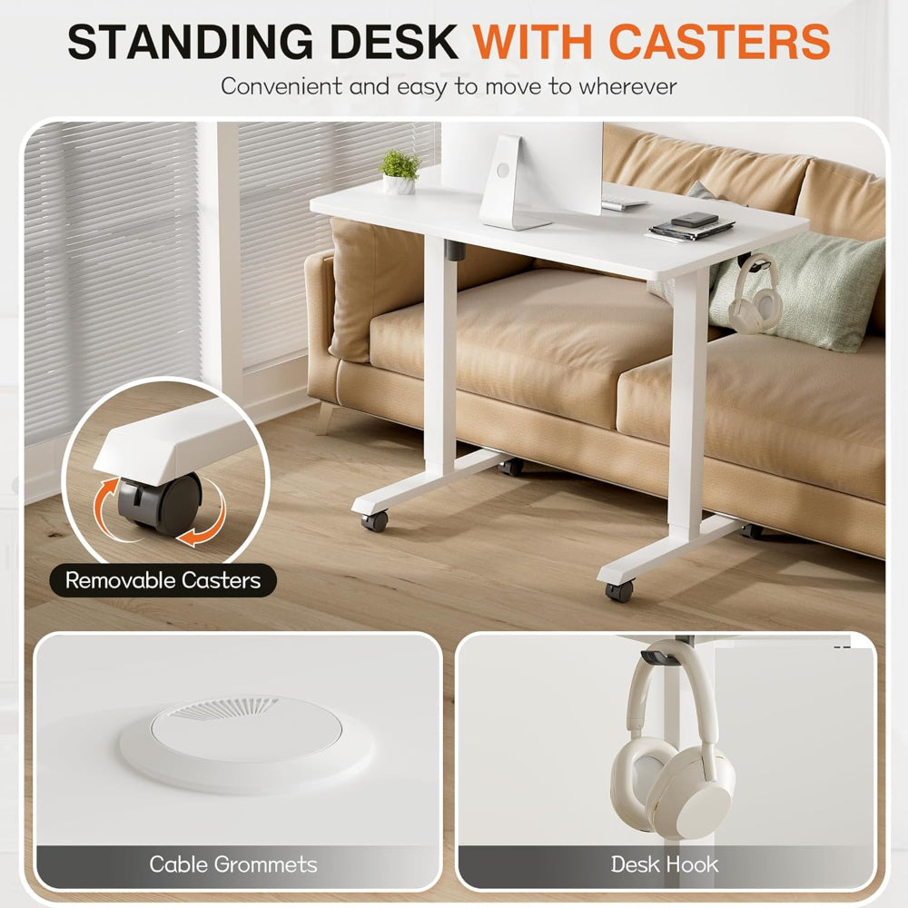 Electric Standing Desk – Adjustable Computer Desk with Casters for Home Office - Work comfortably with this electric standing desk designed for flexibility and modern home offices. The 39" x 24" desktop provides ample space for monitors, laptops, and accessories, while the smooth height adjustment (Adjustable height from 27.95 inches to 46.85 inches) lets you switch from sitting to standing effortlessly. Equipped with removable casters for easy movement, this sleek white desk combines function, comfort, and style—perfect for productivity, posture, and workspace efficiency.