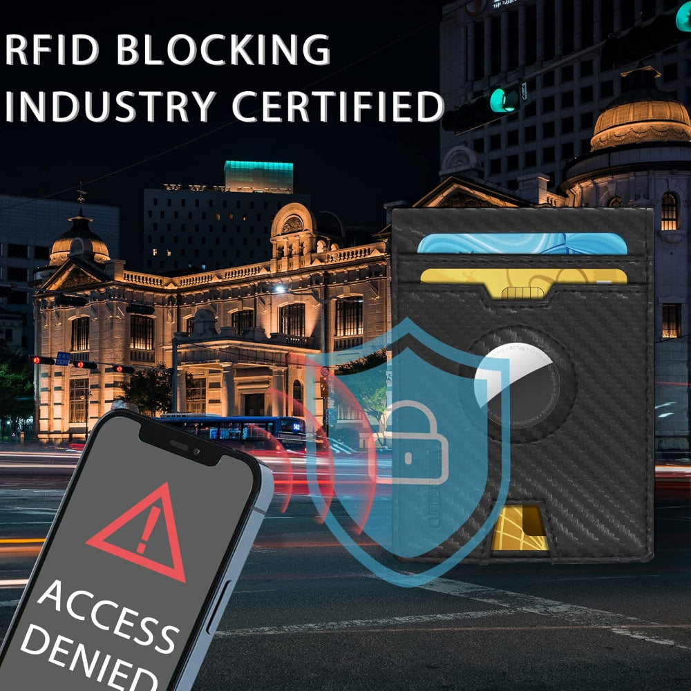 Slim RFID Blocking Bifold, Front Pocket Card Holder - GPS Tag Compatible