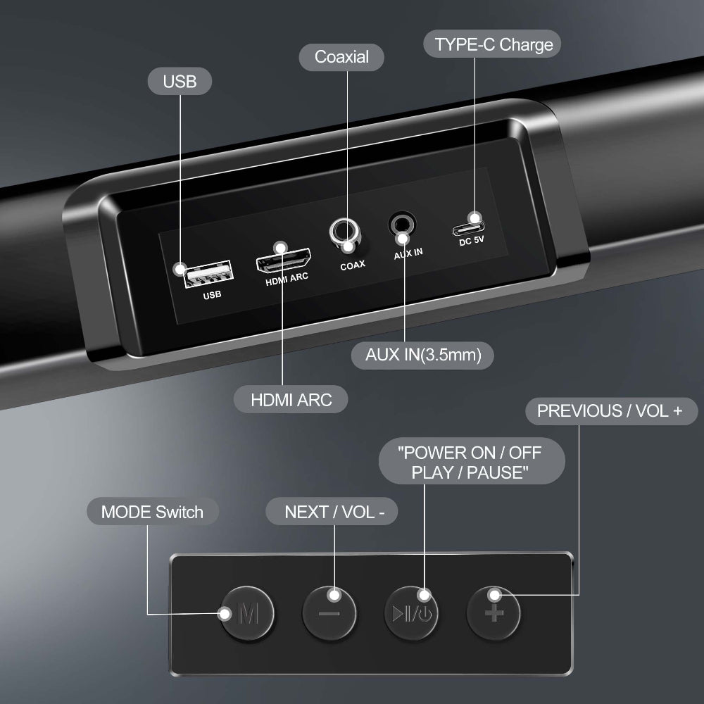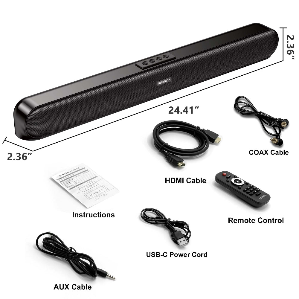 Sound Bar Speaker – Bluetooth & Wired TV Audio, 3D Surround with AUX/HDMI/USB - Enjoy powerful, room-filling sound with this 30W Sound Bar, designed to deliver immersive 3D surround audio for movies, gaming, and music. Its versatile connectivity—featuring COAX, AUX, HDMI, USB, and Bluetooth 5.0—ensures smooth compatibility with TVs, computers, tablets, and mobile devices. The sleek and compact 24.41" × 2.36" × 2.36" design fits effortlessly into any home theater or workspace while offering clear, dynamic sound across a 60Hz–16kHz frequency range. Perfect for home entertainment, outdoor camping, and family trips, it enhances audio quality wherever you go. The complete set includes a remote control, USB-C power cord, AUX cable, HDMI cable, COAX cable, and a user manual for quick and worry-free setup.