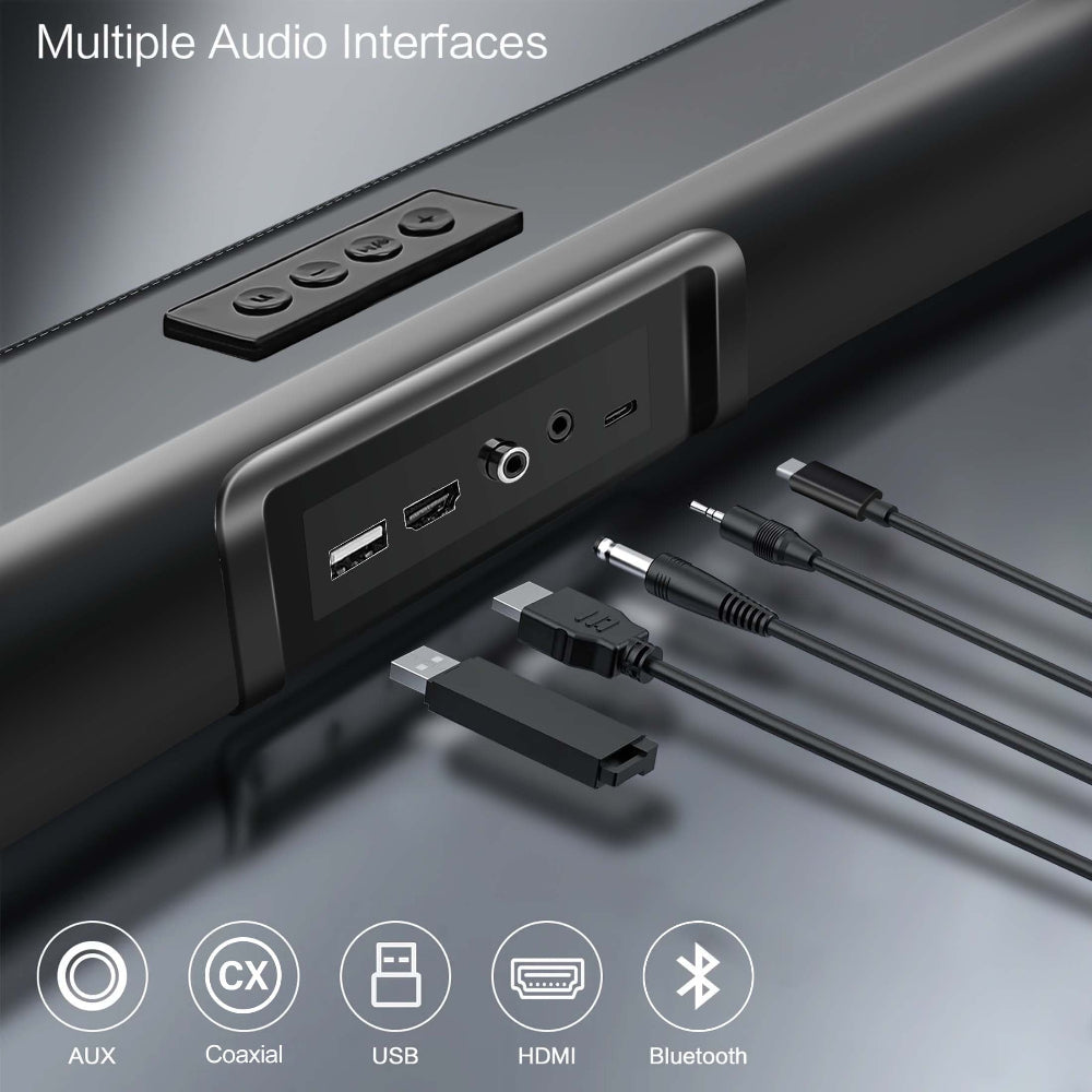 Sound Bar Speaker – Bluetooth & Wired TV Audio, 3D Surround with AUX/HDMI/USB