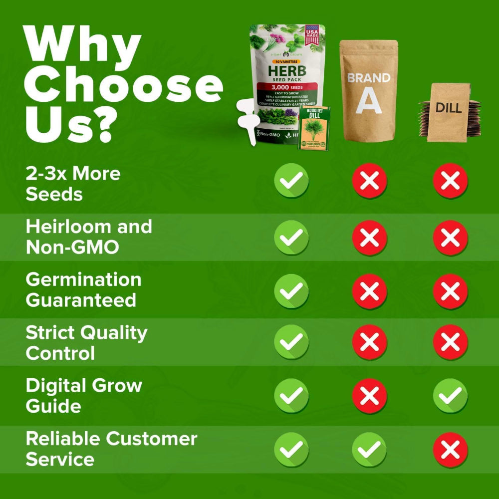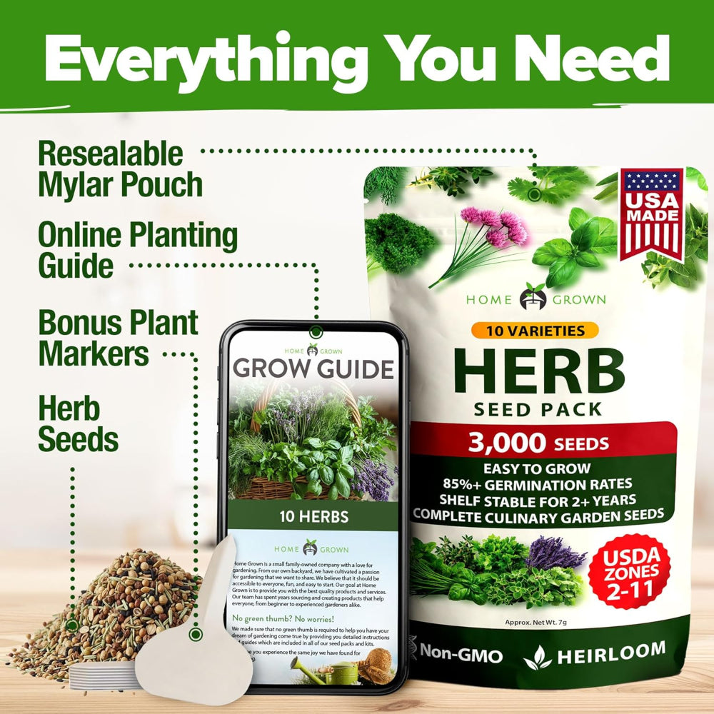 Variety Herb Seeds Kit – 3000+ Heirloom Non GMO Seeds, Indoor Outdoor Planting