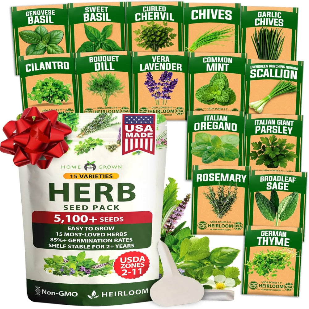 Variety Herb Seeds Kit – 3000+ Heirloom Non GMO Seeds, Indoor Outdoor Planting - Start your own herb garden with this 10-variety herb seed kit featuring over 3,000 heirloom non-GMO seeds for planting indoors or outdoors. This large variety pack includes popular culinary herbs perfect for cooking, gardening, and home-grown freshness. Designed for versatility, the seeds can be planted in outdoor gardens, indoor pots, raised beds, or hydroponic systems. Each seed variety is selected for reliable growth and flavorful harvests, making it ideal for beginner gardeners and experienced growers alike. The convenient kit format helps simplify planting while providing a diverse herb selection. Perfect for kitchen gardens, home gardeners, and thoughtful gardening gifts.